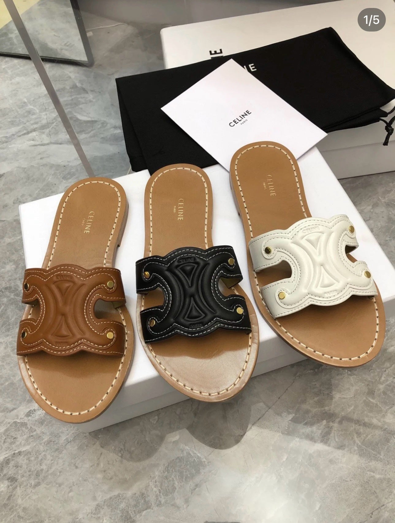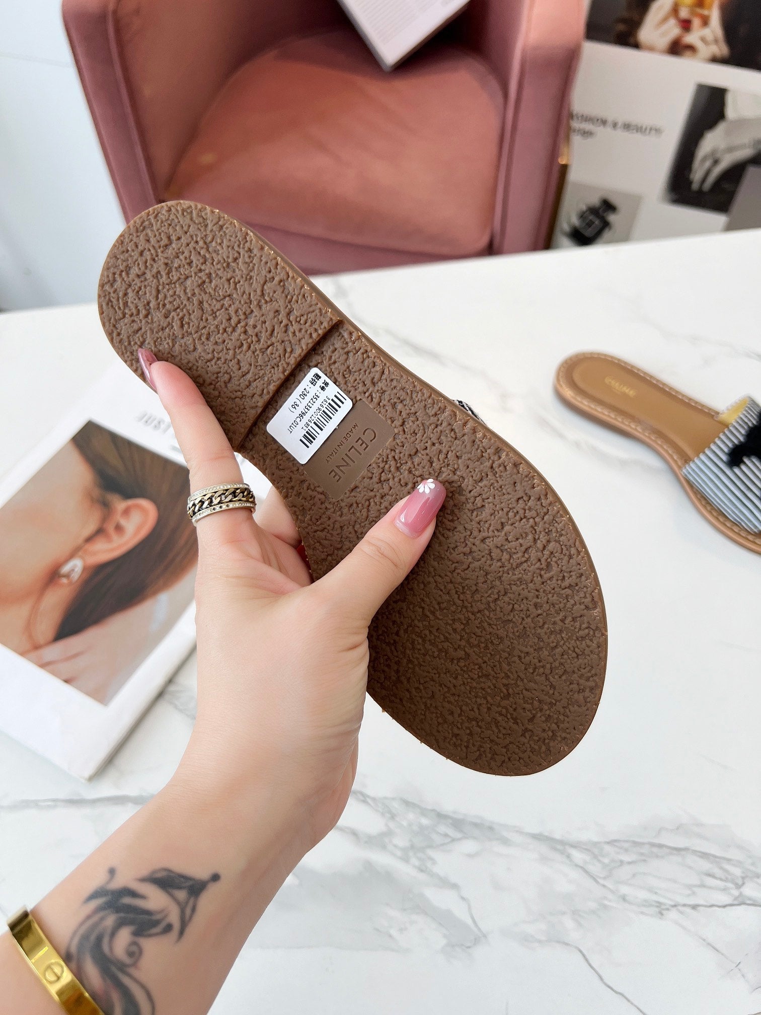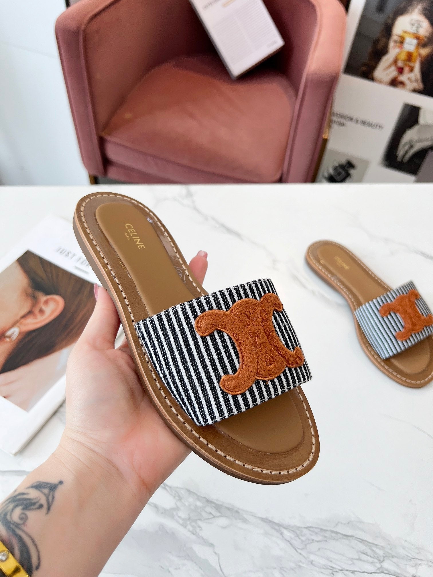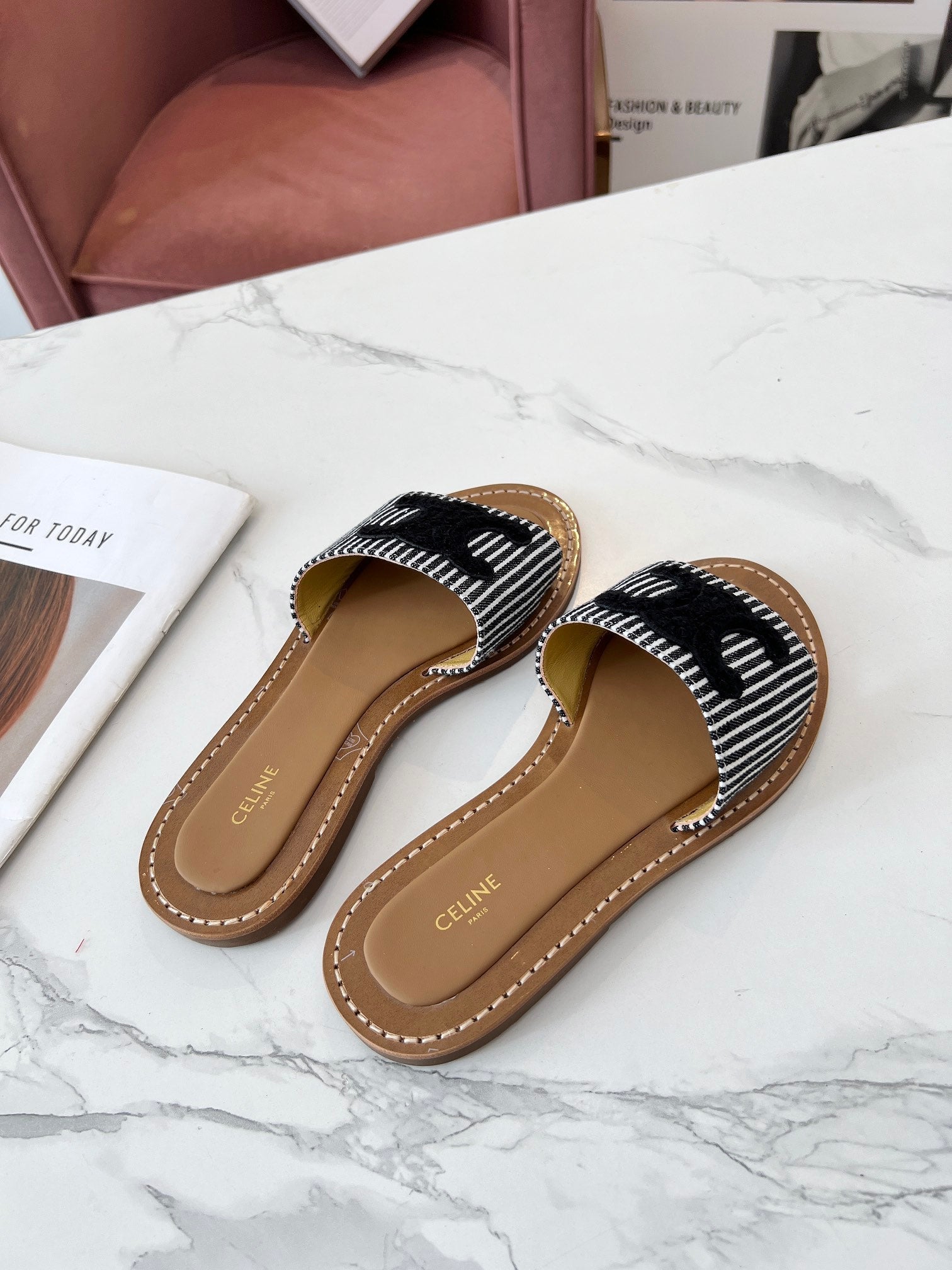 Celine 25C Slippers Beige mix Black Fabric with Calfskin 238156