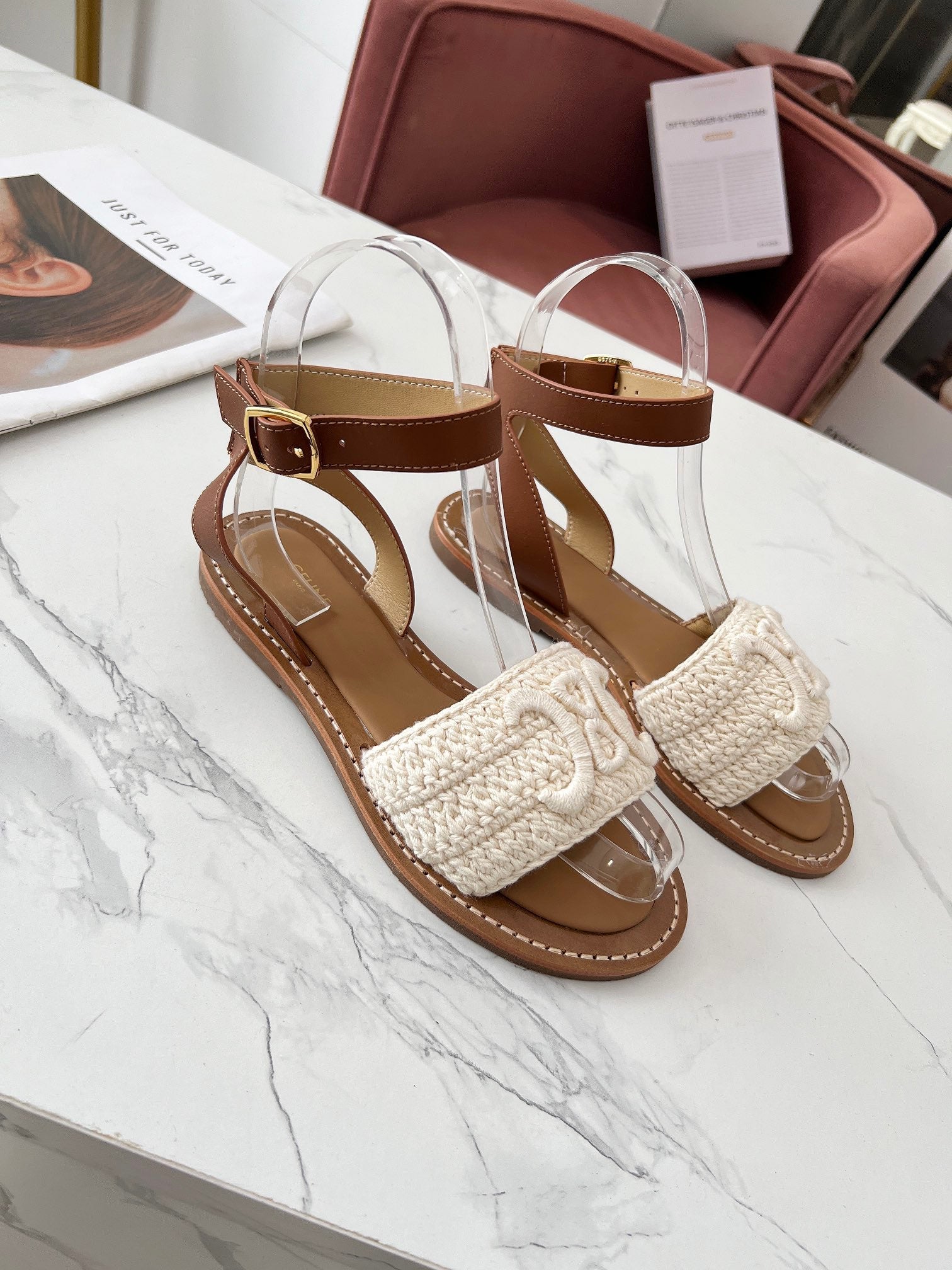Celine 25C Lympia Sandal Beige mix Brown Fabric with Calfskin 238162
