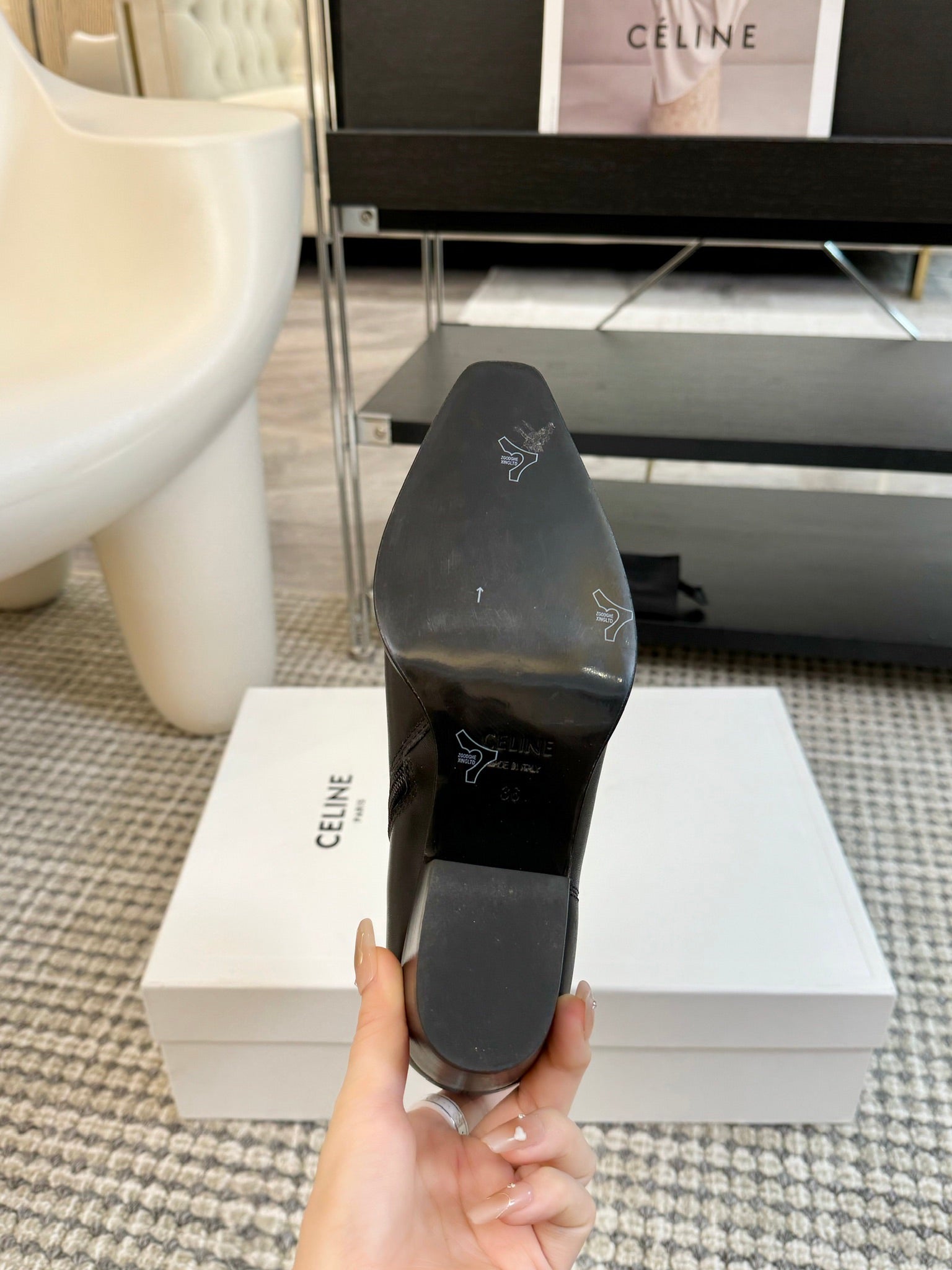 CELINE 25 Mid Calf Cowboy Boots Black Calfskin