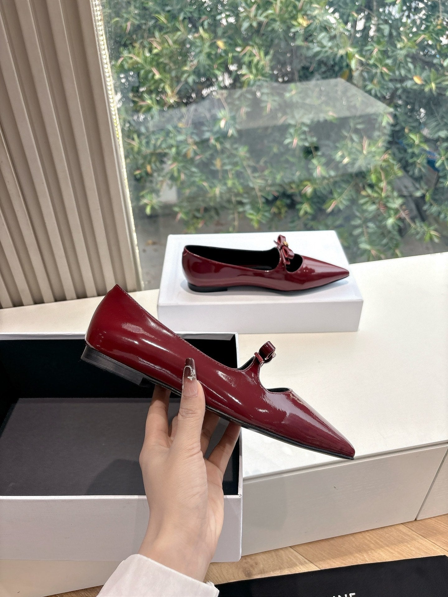 CELINE 25C Ballet Flats Black Patent Leather 236744