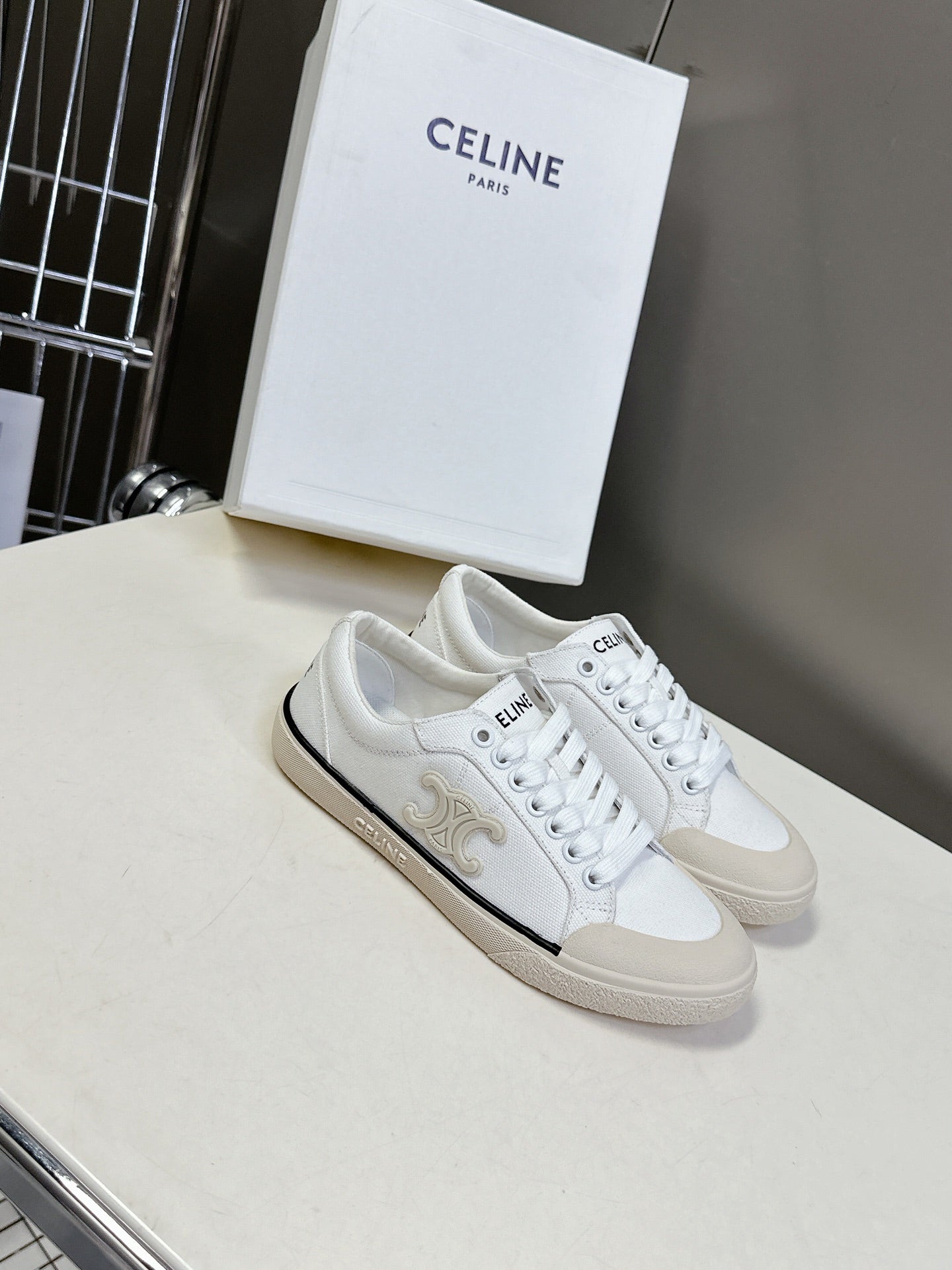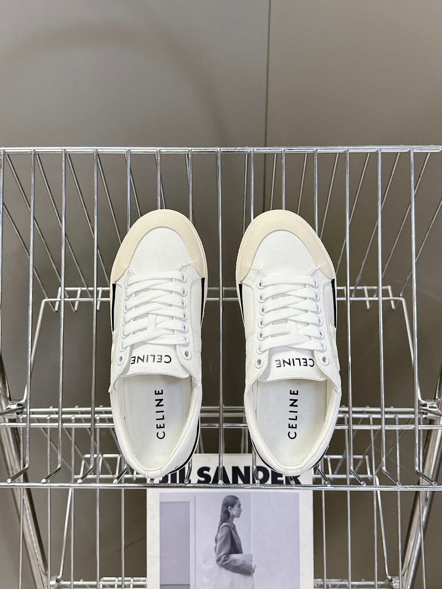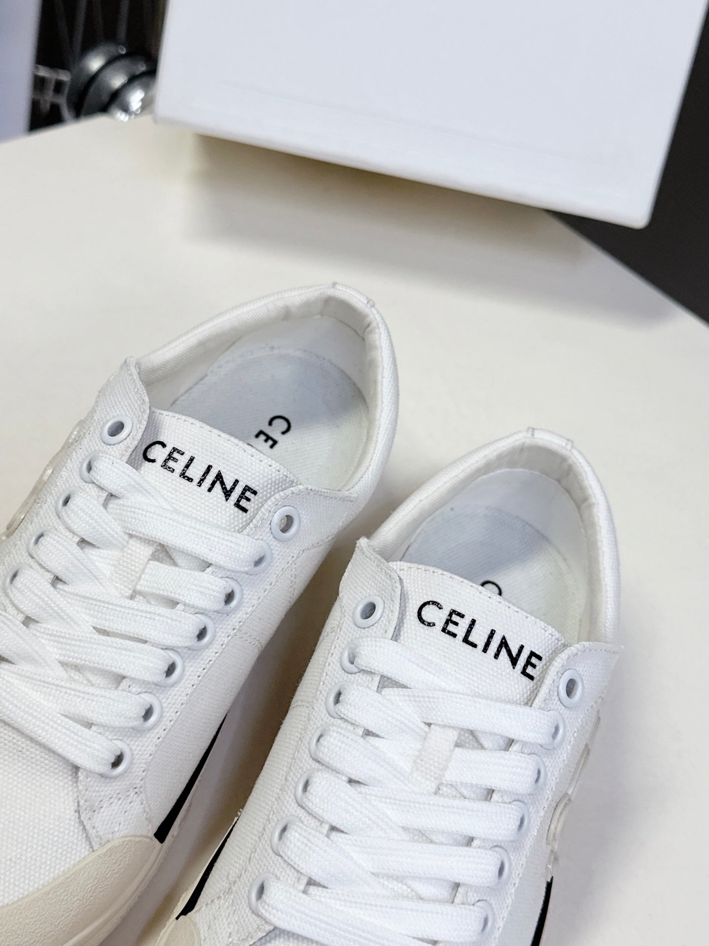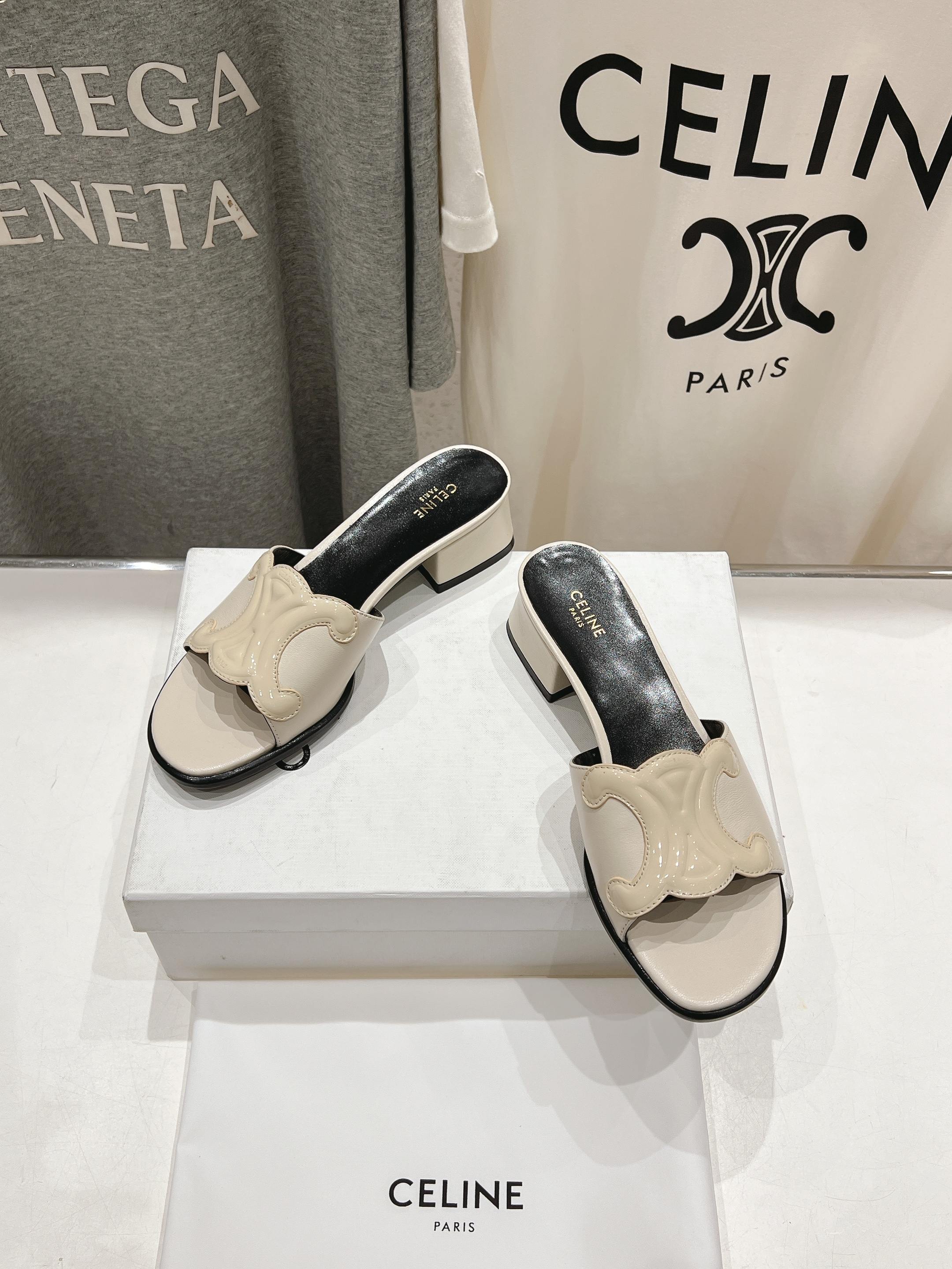 Celine 25C Slippers White Fabric with Calfskin 238157