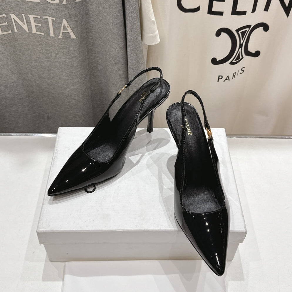 Celine 25C Slingback Pump Black Patent Leather 236769