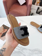 Celine 25C Slippers Black Fabric with Calfskin 238168