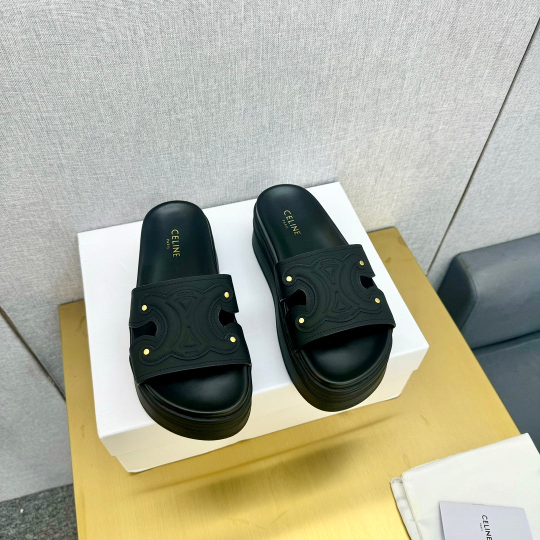 Celine Platform Slide Black Leather 238139