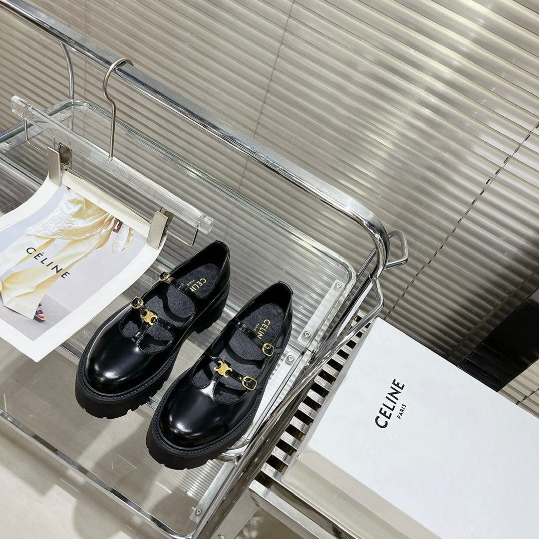 HIGH FLAT SANDALS WITH DOUBLE STRAP-DESIGN LEATHER BLACK