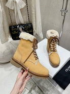 MARTIN BOOT IN PEANUT BROWN SUEDE AND WHITE FLEECE