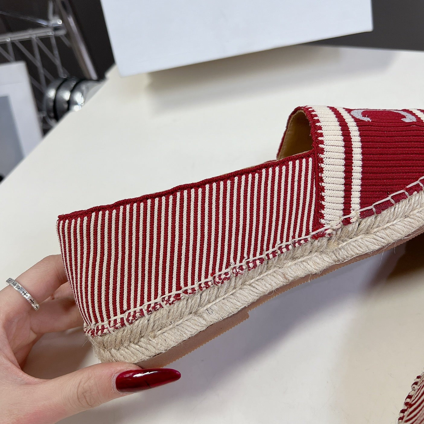 NEW FLAT FISHERMAN SHOES CARO RED COTTON CANVAS