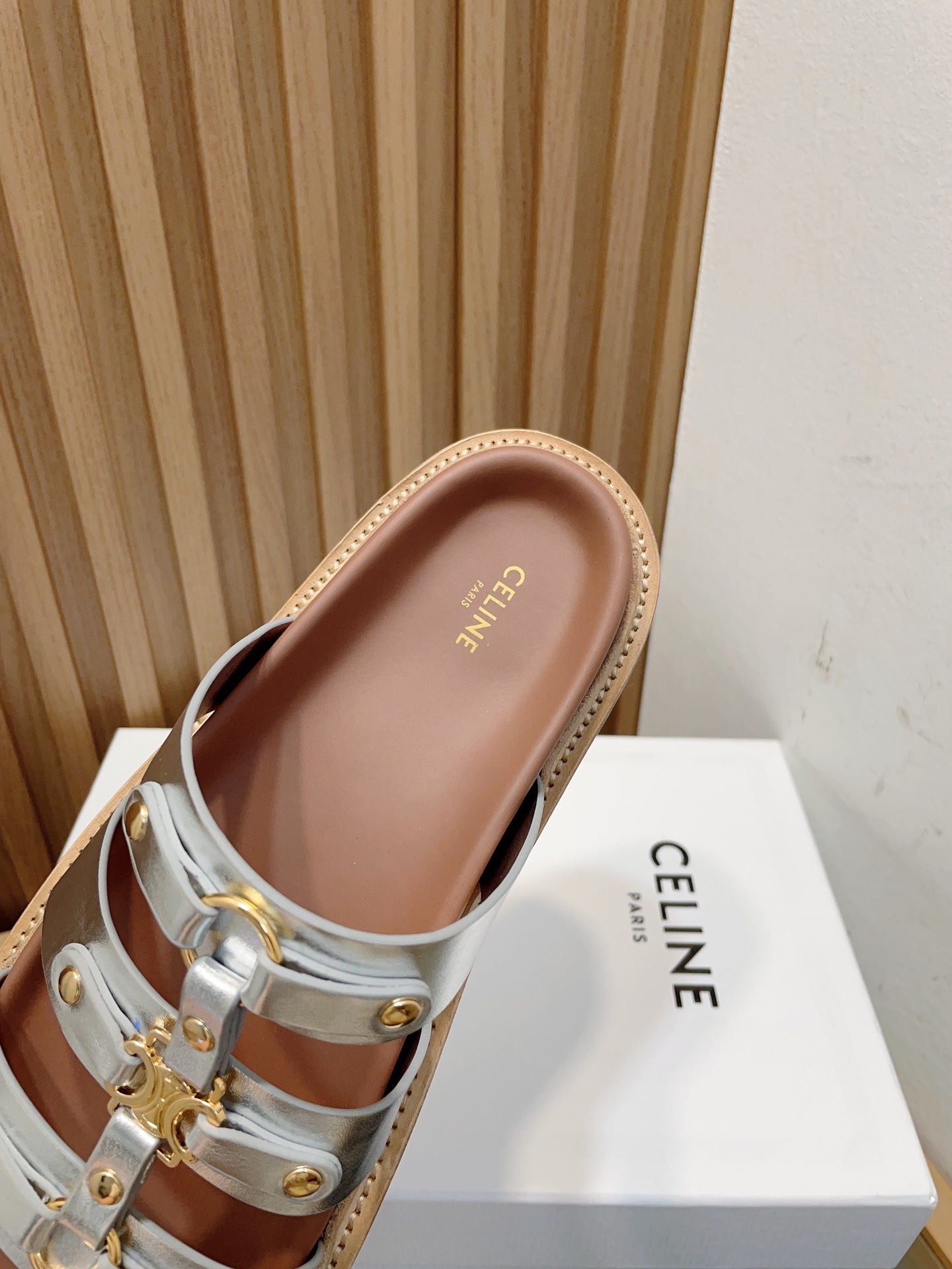 LEA TRIOMPHE PLATFORM SLIDES WOMEN VEGETABLE TANNED CALFSKIN BROWN