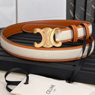 CEL 25mm Triomphe Belt in Taurillon Brown White Canvas 176292