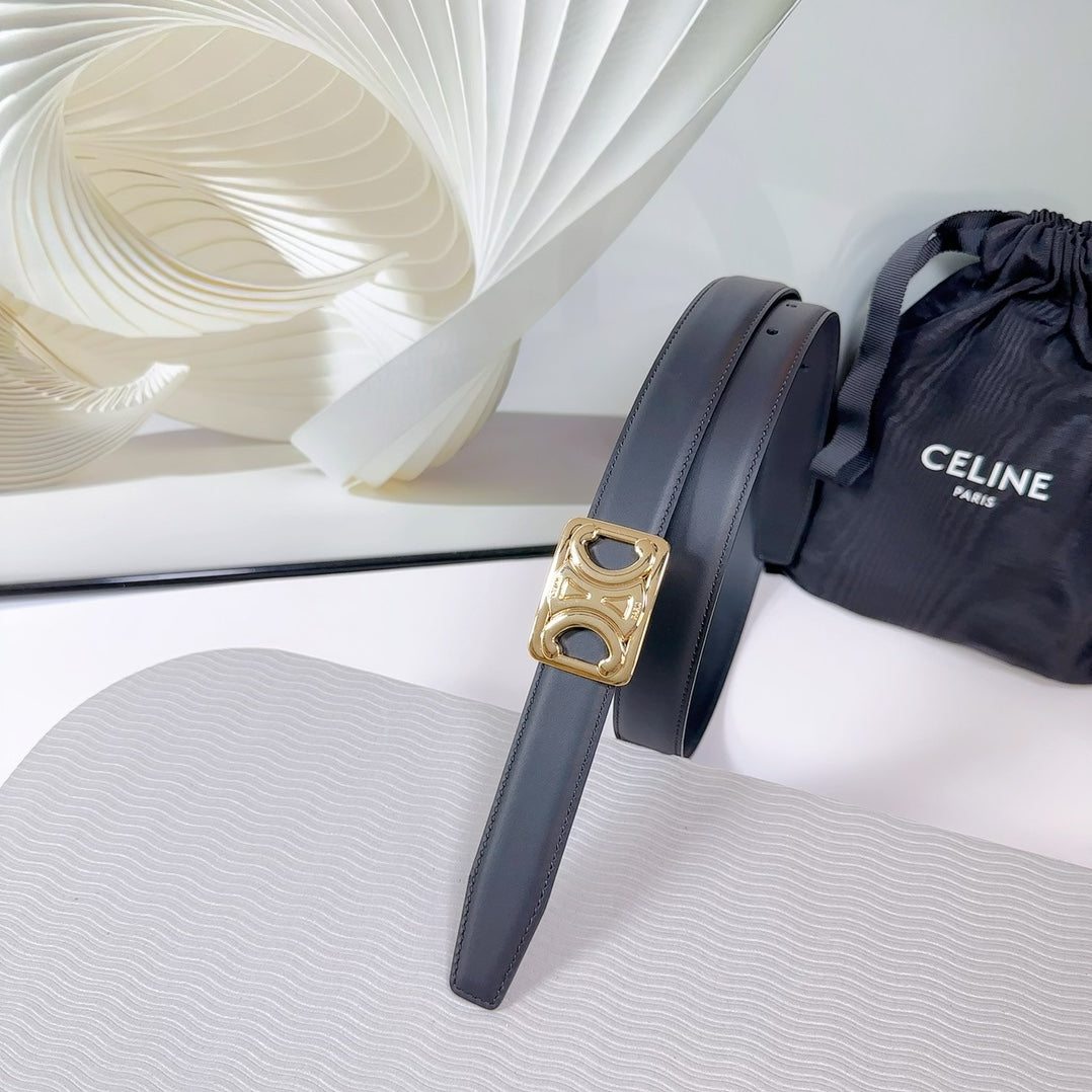 CL MEDIUM 25MM REVERSIBLE FRAMED TRIOMPHE BELT BLACK CALFSKIN LIGHT GOLD HARDWARE