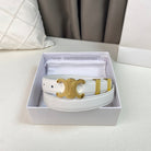 Medium Triomphe Belt 25mm White Calfskin Gold Loop Ghw