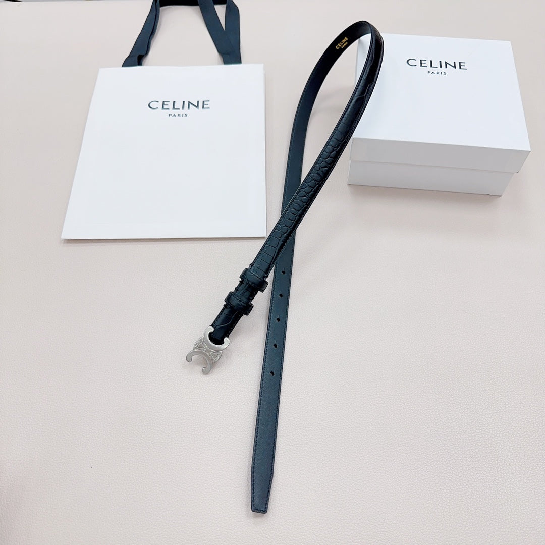CEL Silver Buckle 13mm Belt Black Cowhide 179726