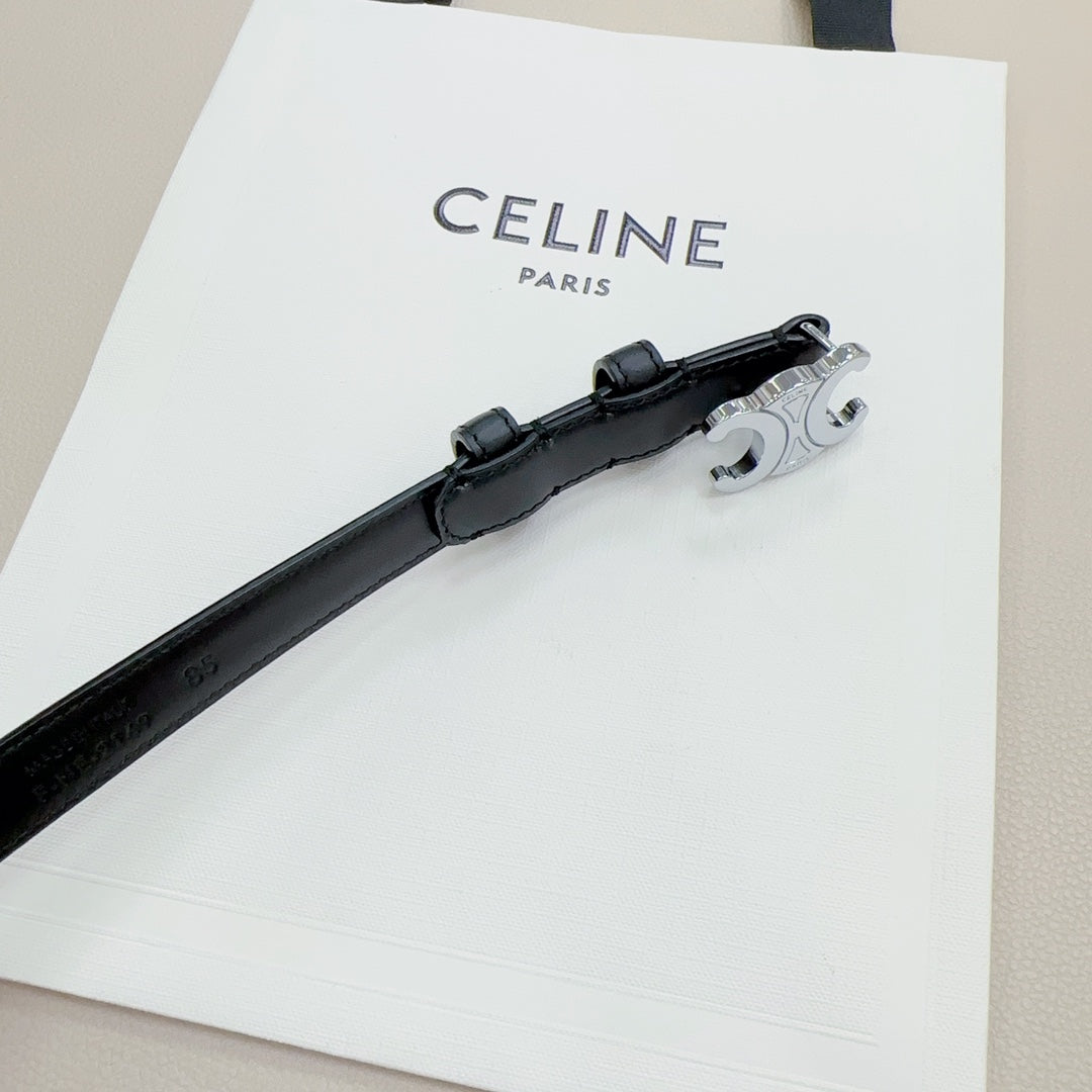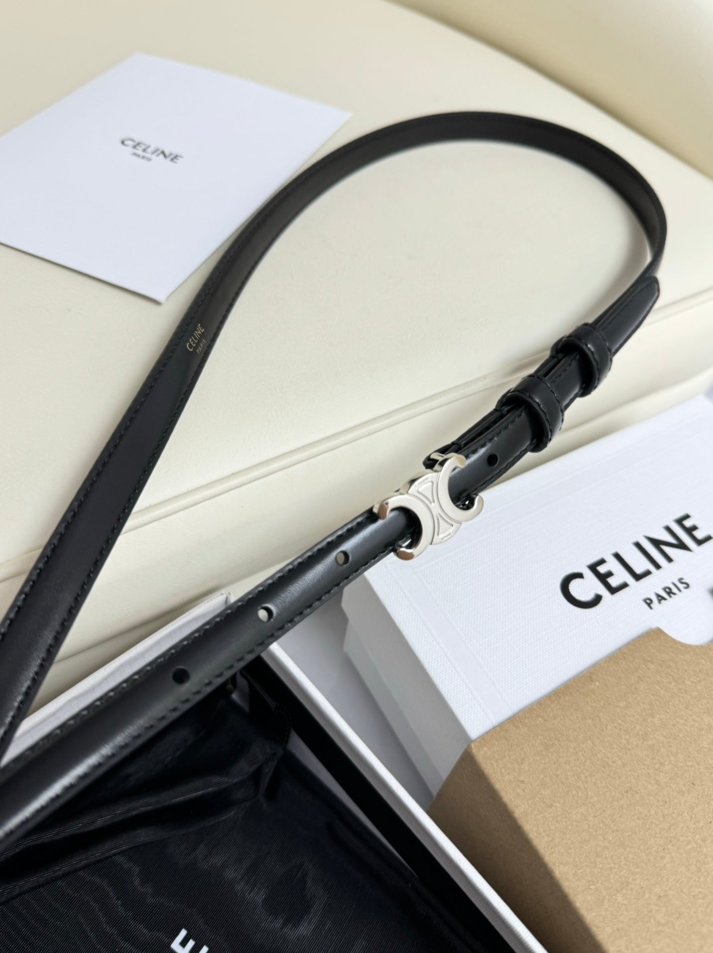 CEL Silver Buckle Belt 25mm Black Calfskin 178252