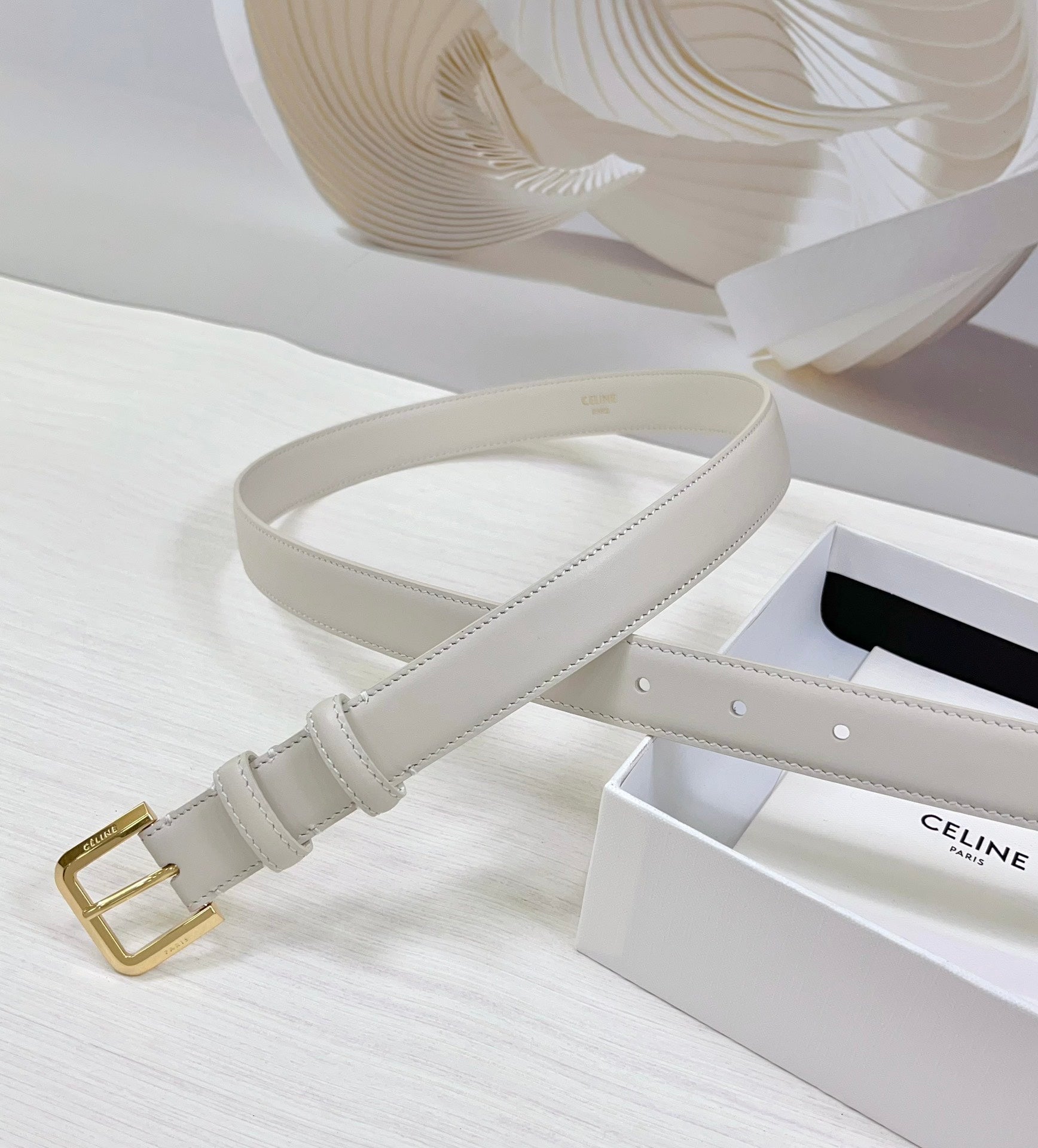 CEL Gold 25mm Triomphe Belt White Beige Canvas 180418