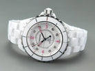 J12 Automatic White Ceramic Pink Diamond Numerals White Dial