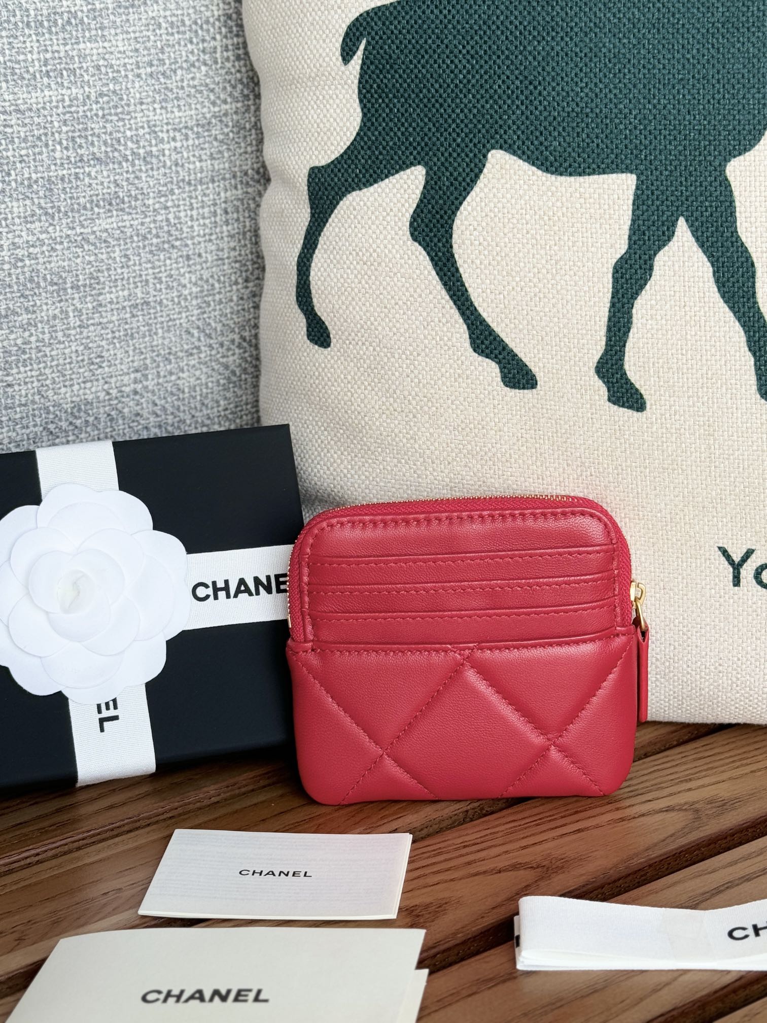 cc 19 zipped coin purse 11cm brown lambskin gold hardware