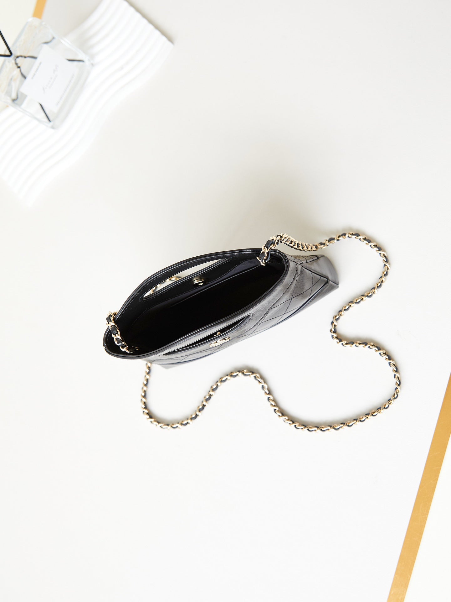 cc 24s 20cm hobo bag black calfskin gold hardware