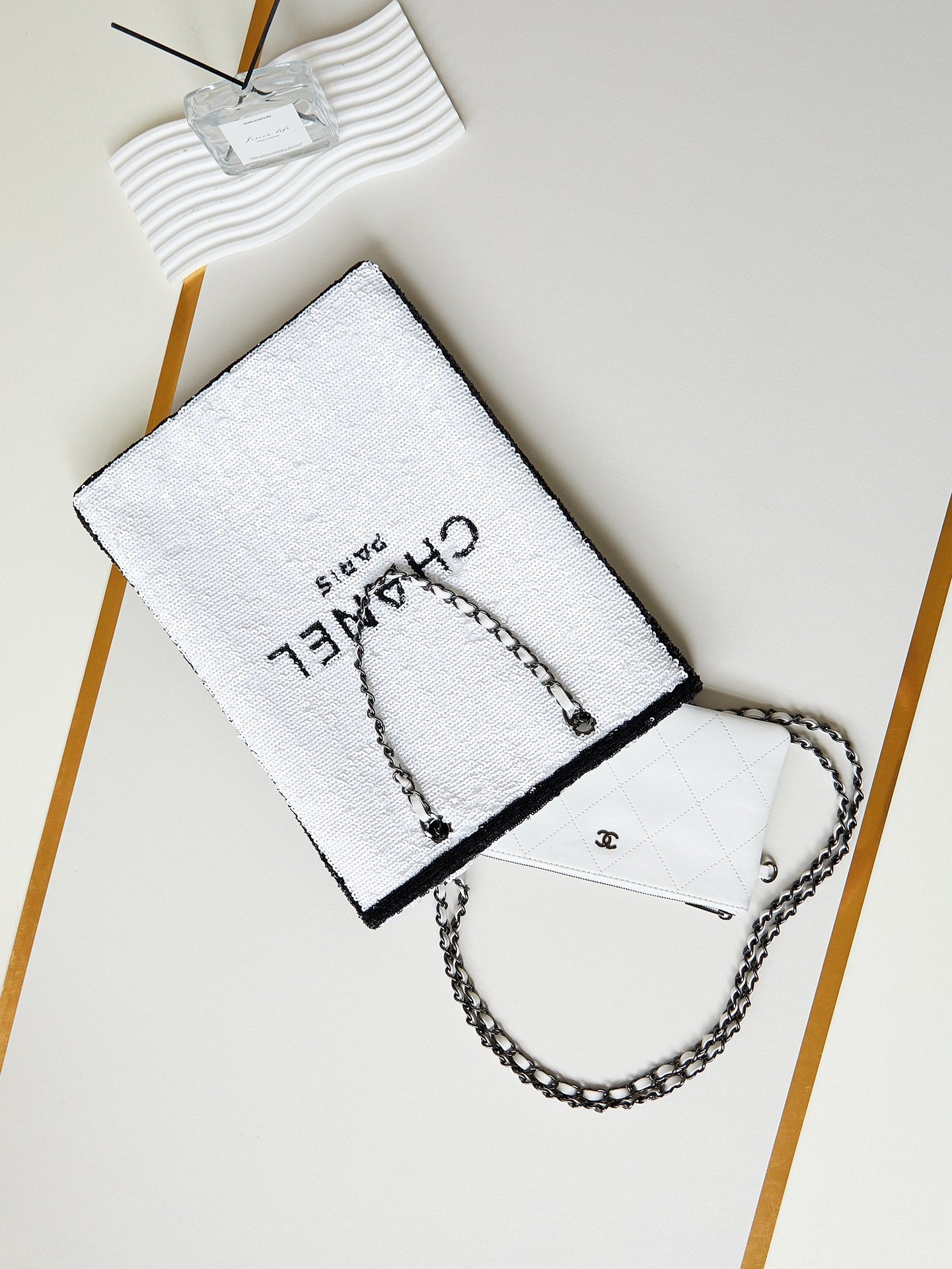 24S Flap Bag 20cm Black White Sequin Calfskin