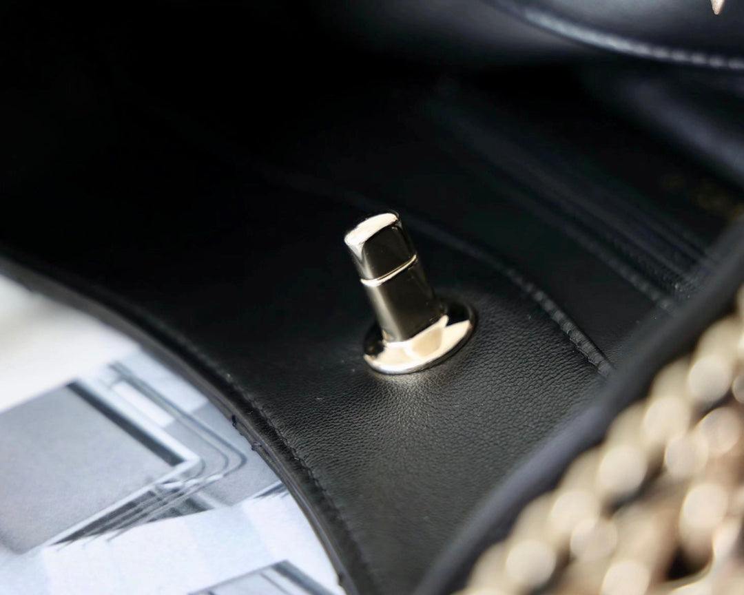 cc 24s mini flap bag 20cm black lambskin pearl ball
