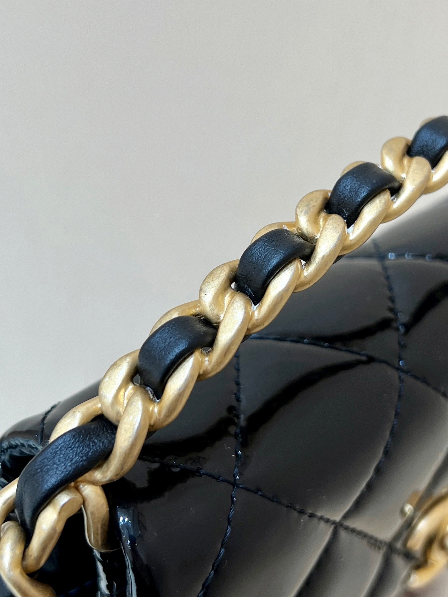 24c mini flap bag 20cm with top handle grey patent calfskin