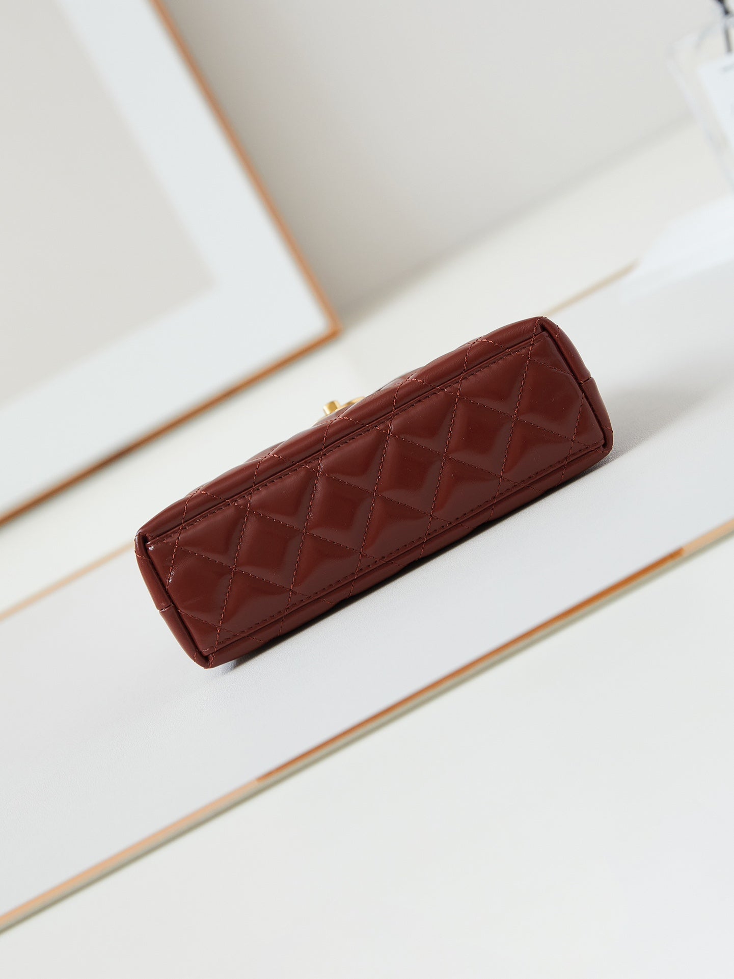 CC 24B Mini Flap Bag 20cm Burgundy Lambskin Gold Hardware