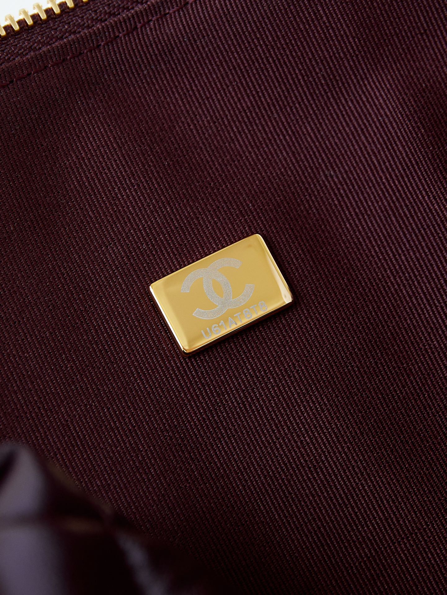 CC 24K Hobo Bag 23cm Black Shiny Lambskin