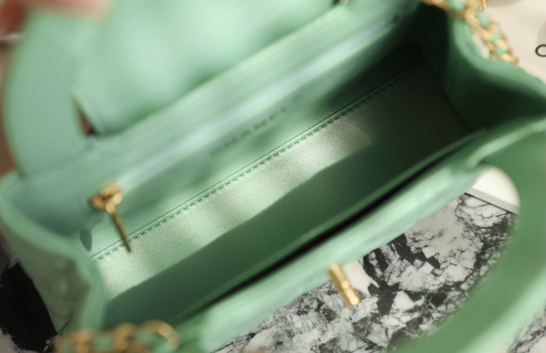 Mini Flap Bag With Top Handle 20cm Brown Lambskin Light Gold Hardware