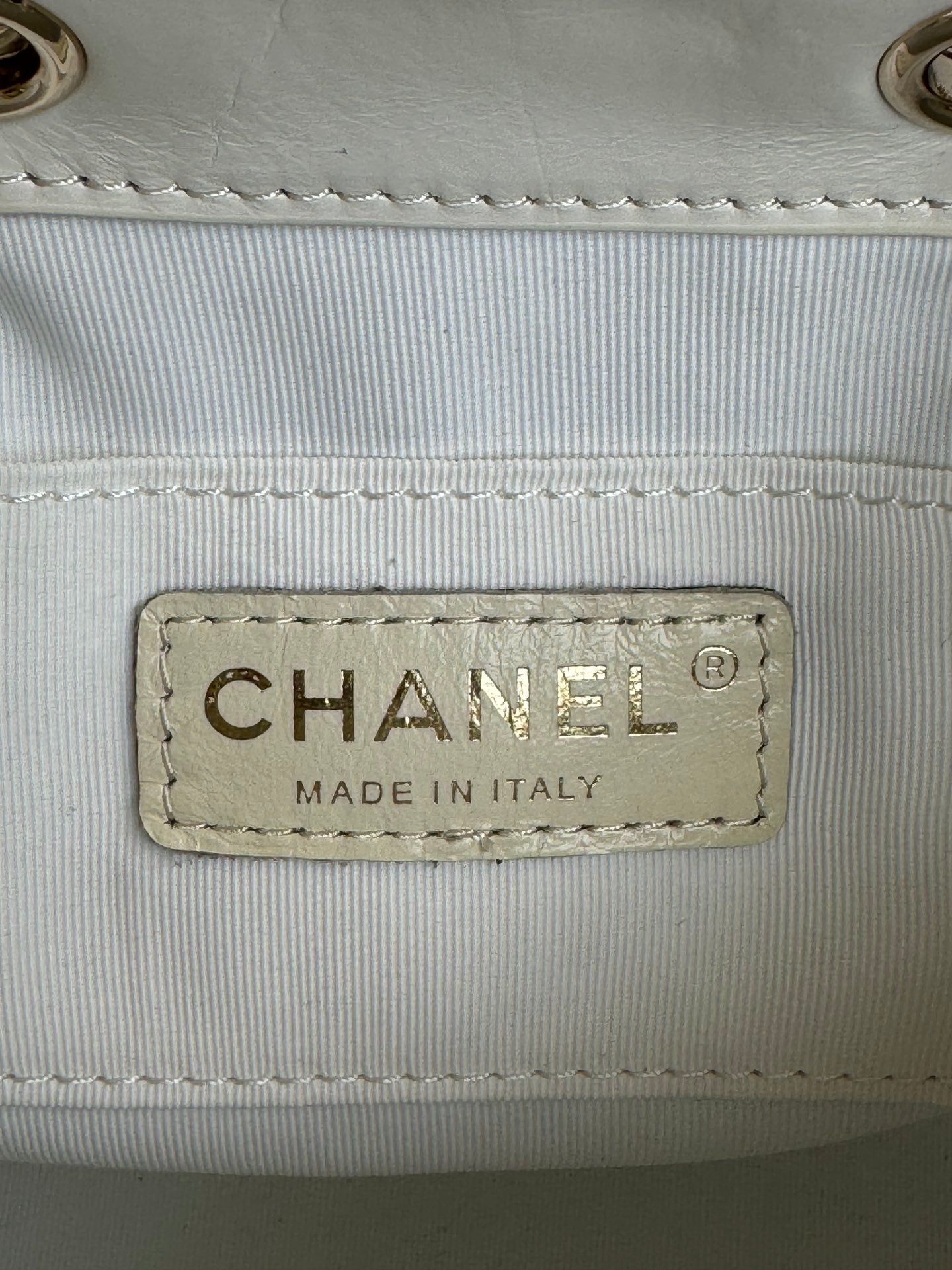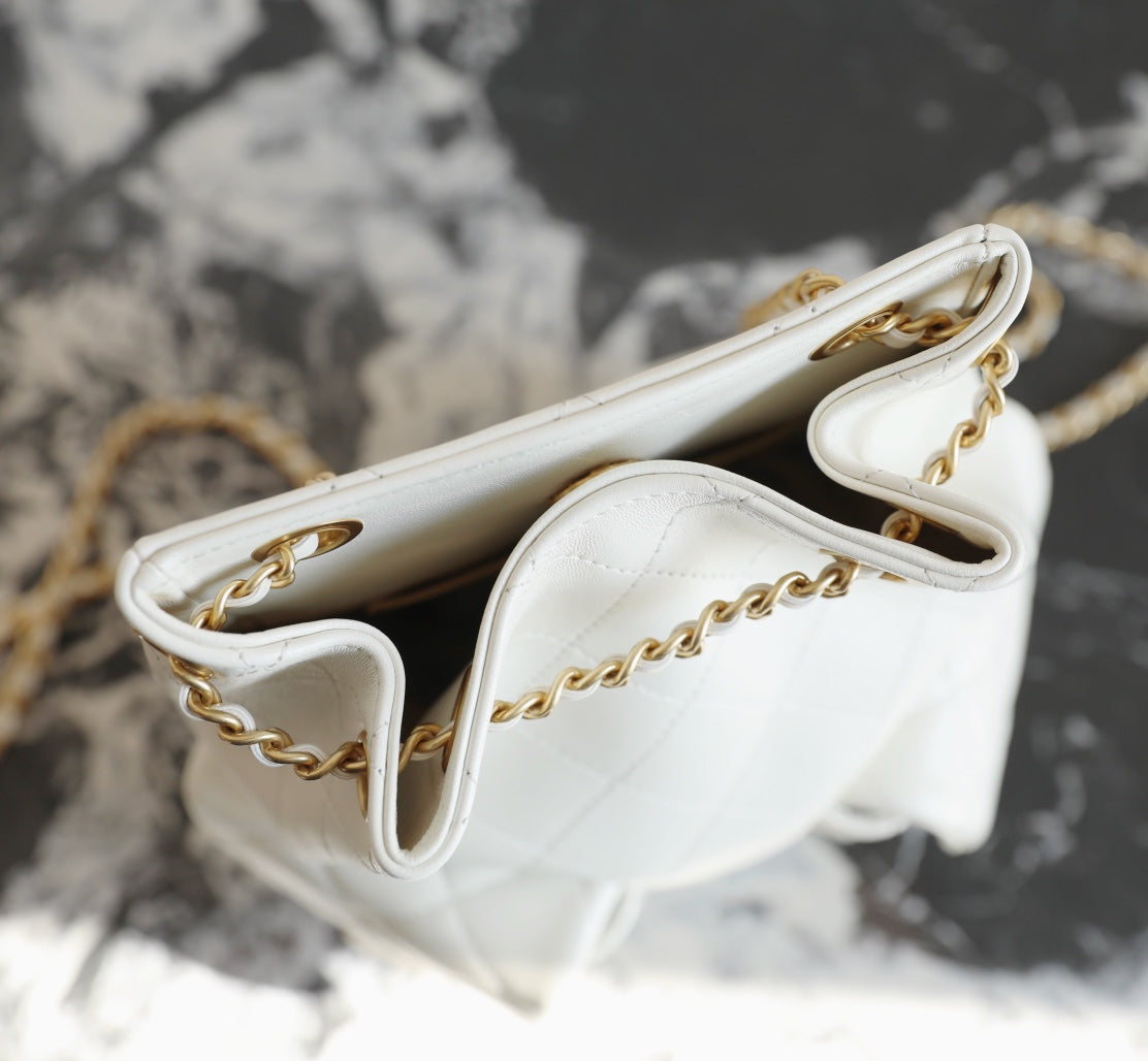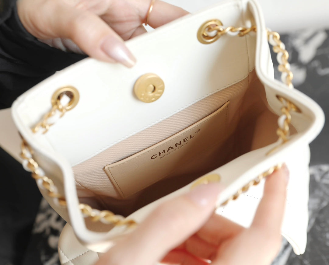 CC Drawstring Backpack White Lambskin