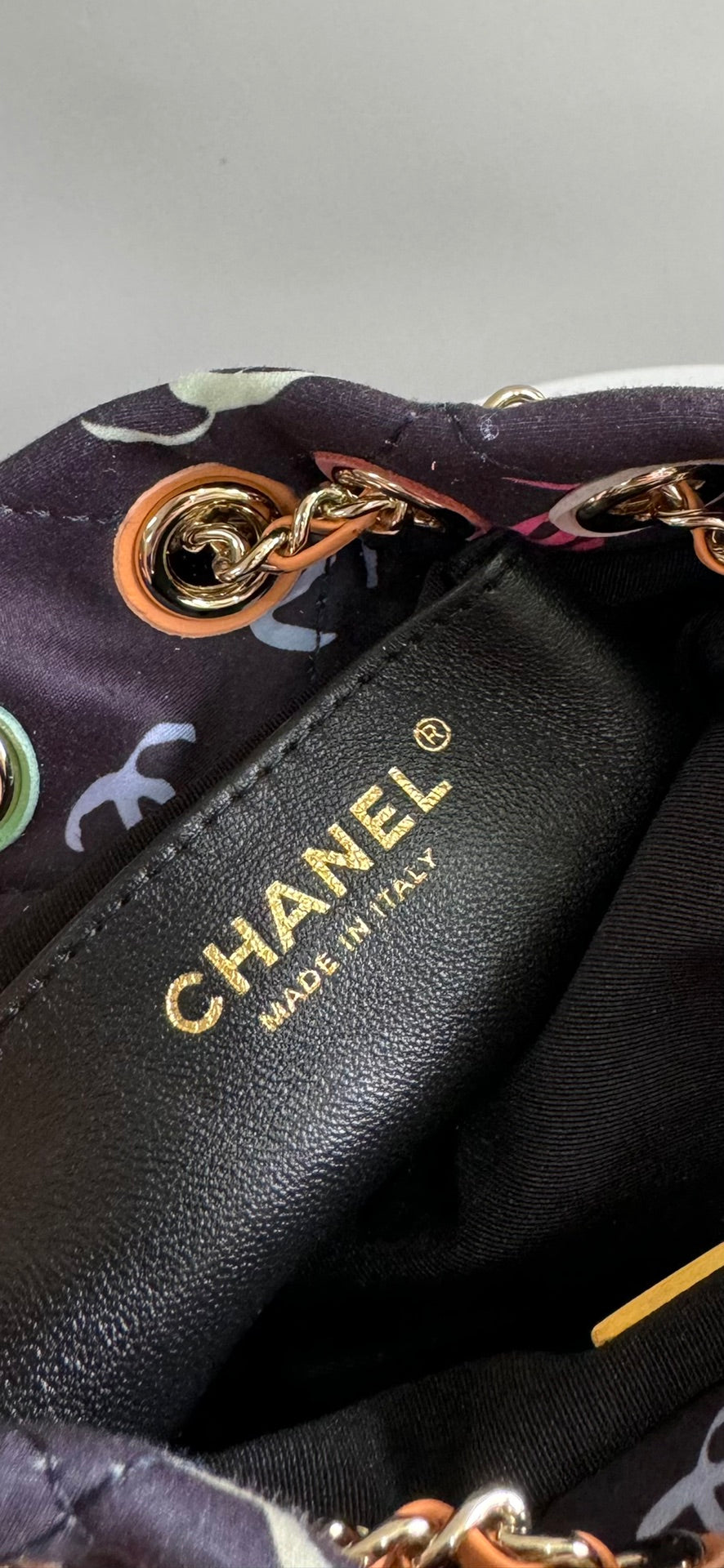 CC BACKPACK 22CM BLACK & MANY OTHER COLORS PRINTED FABRIC GOLD HARDWARE