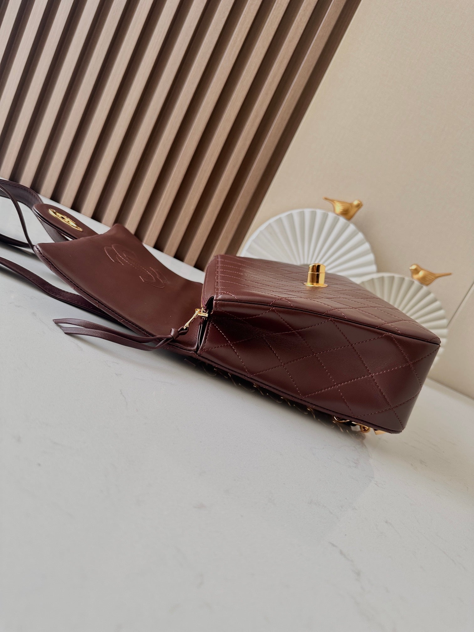 cc large backpack 31cm gold patent calfskin gold hardware