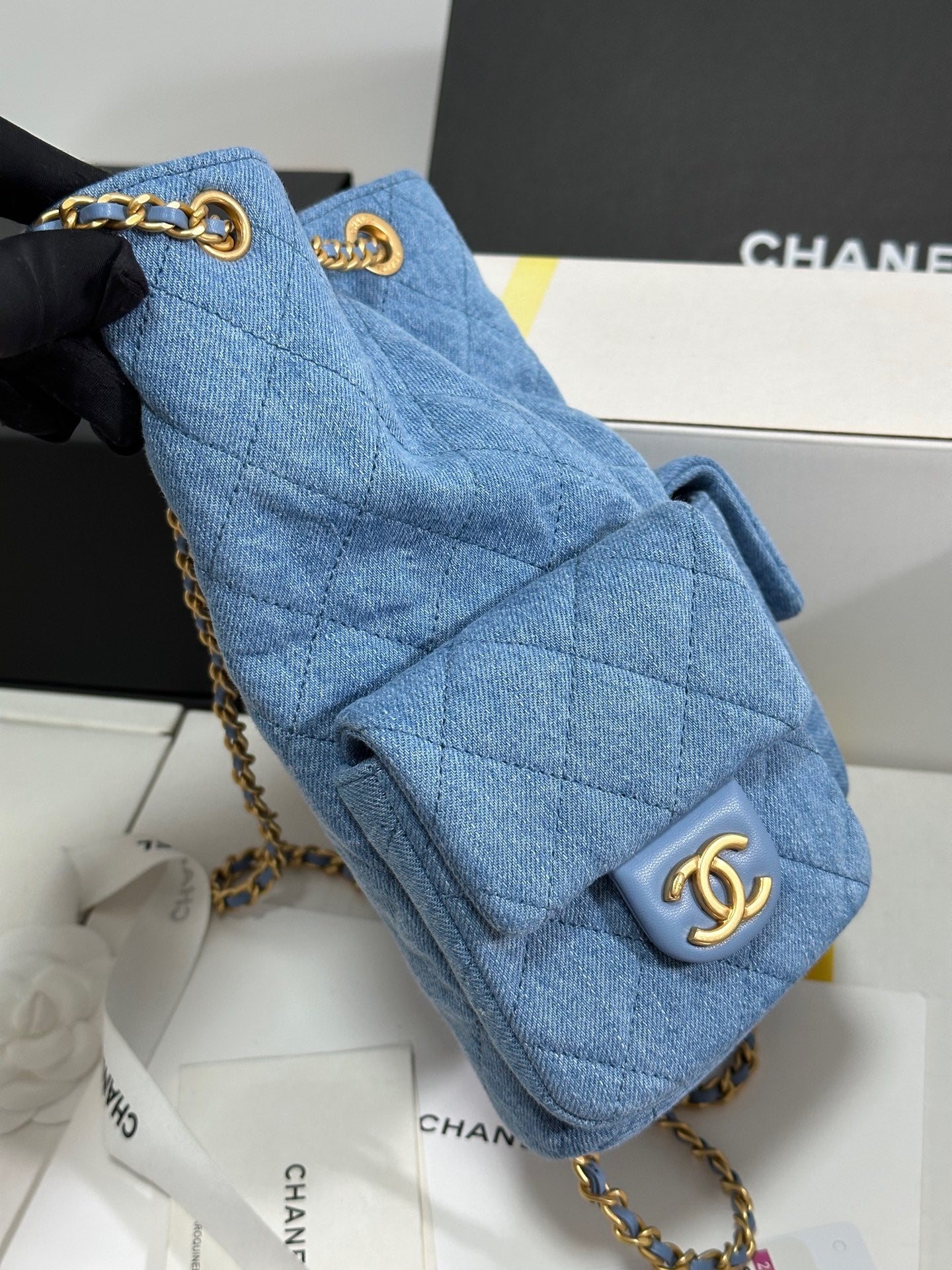 CC 25C Backpack 24.3cm Demin Blue Washed denim Gold Hardware 243645