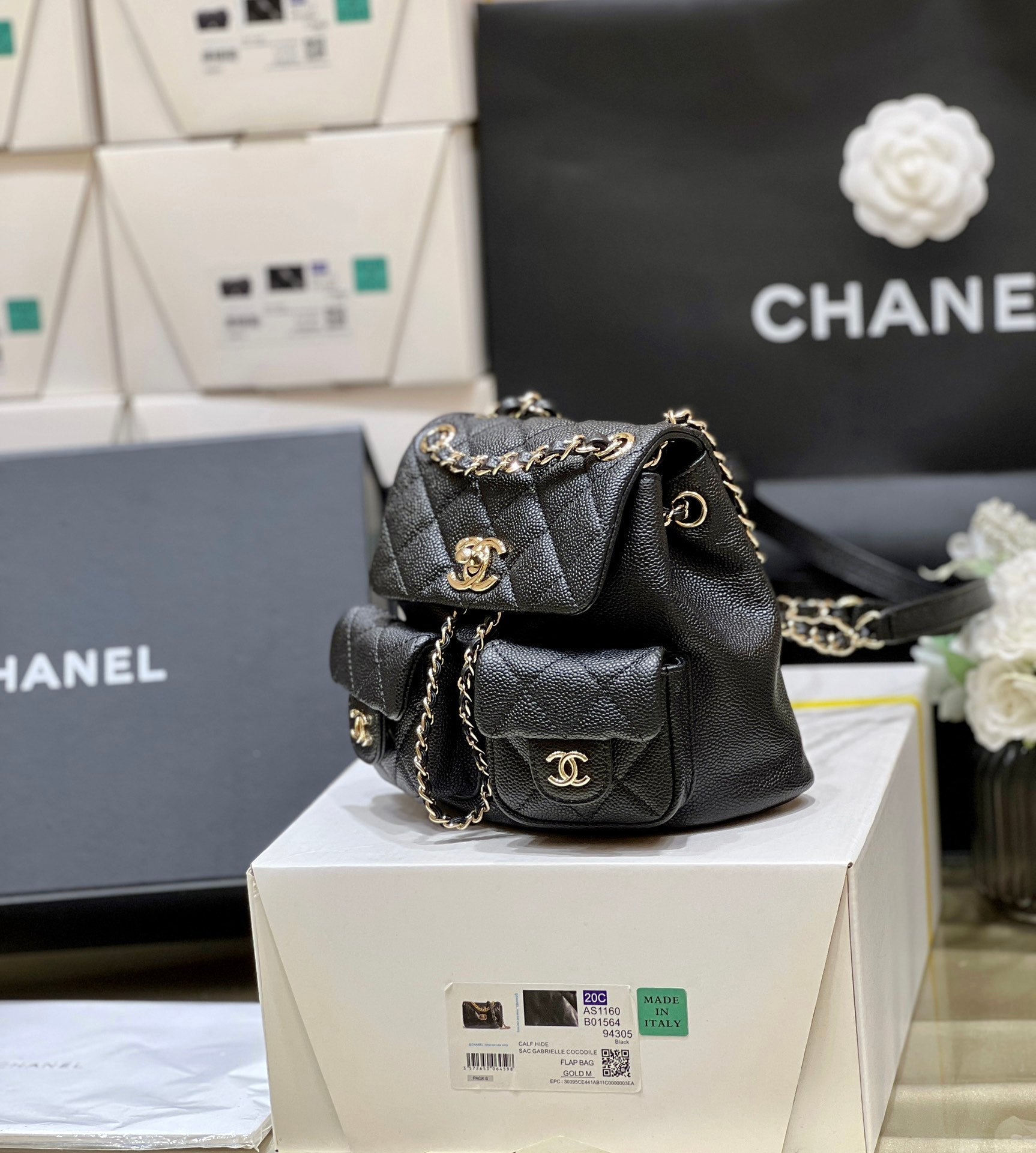 CC 2025 Backpack 34cm Black Soft Calfskin 335087