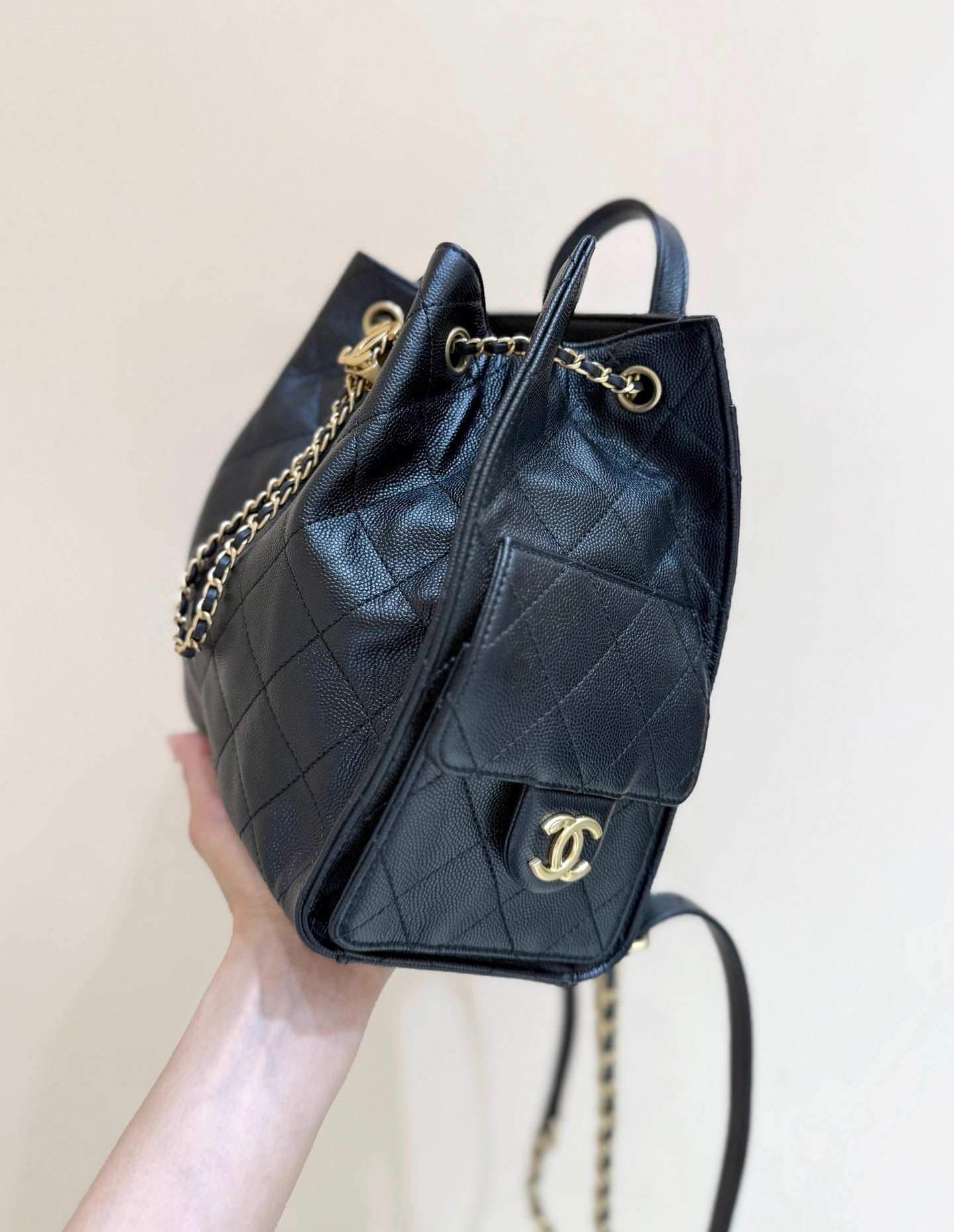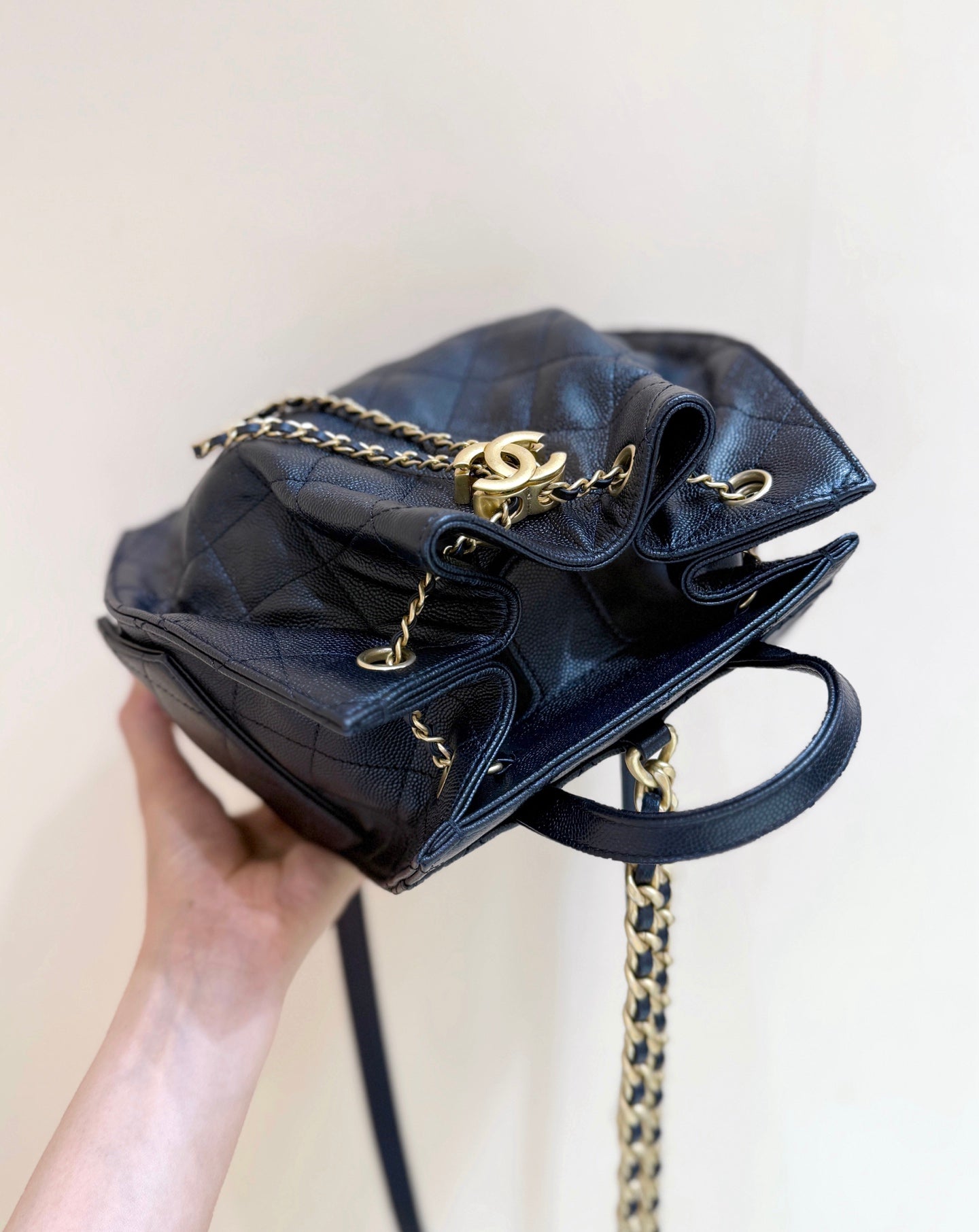 Chanel 2025 Affinity Backpack Black Gold Caviar Leather 343094