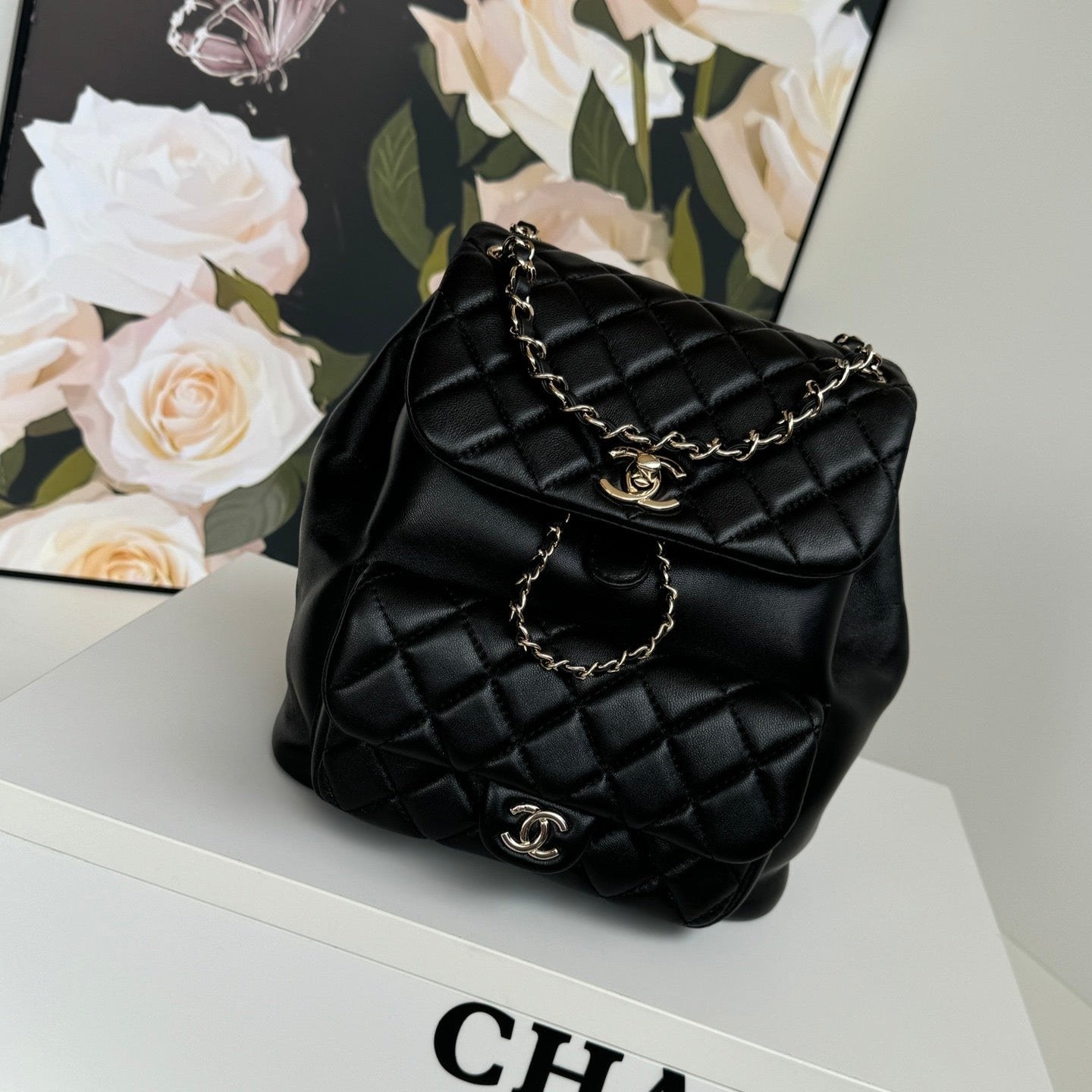 duma backpack 22cm black lambskin light gold hardware