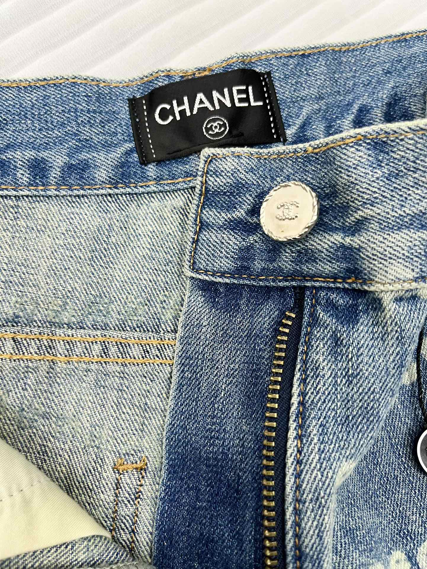 CC 25 Jean Printed Blue White Washed Denim