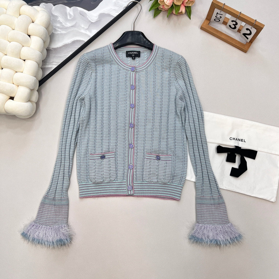 CC 25 Pocket Cardigan Blue Cashmere Cotton