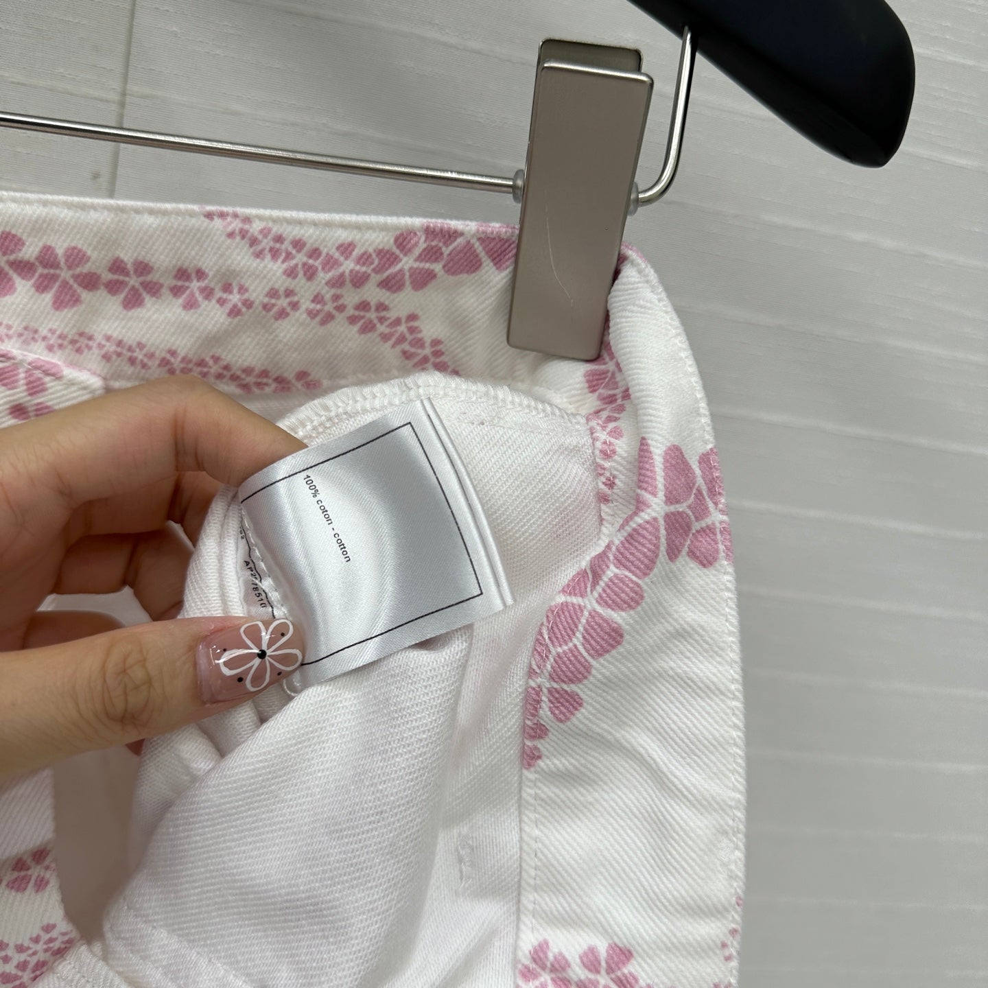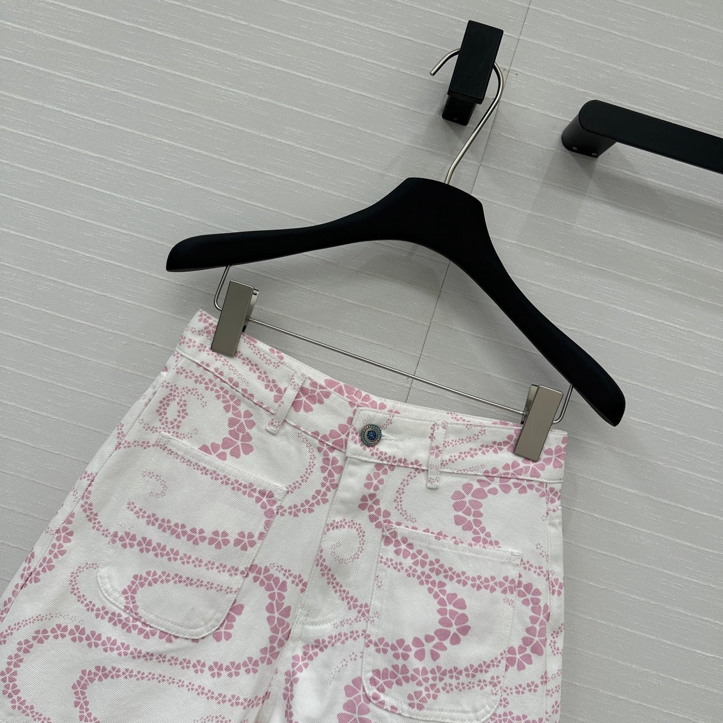 CC 25 Printed Denim Short Pink White Cotton