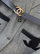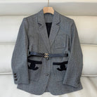 Chanel 2025 Blazer With Belt Gray Black Polyester Wool