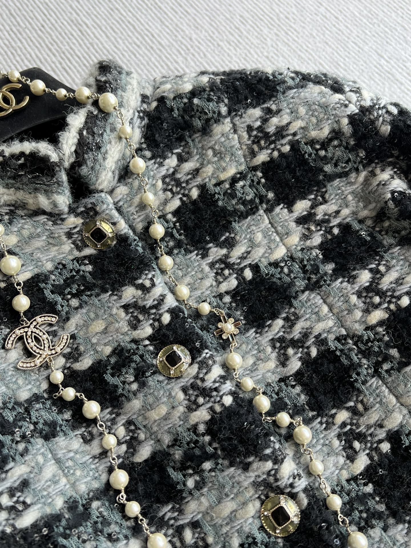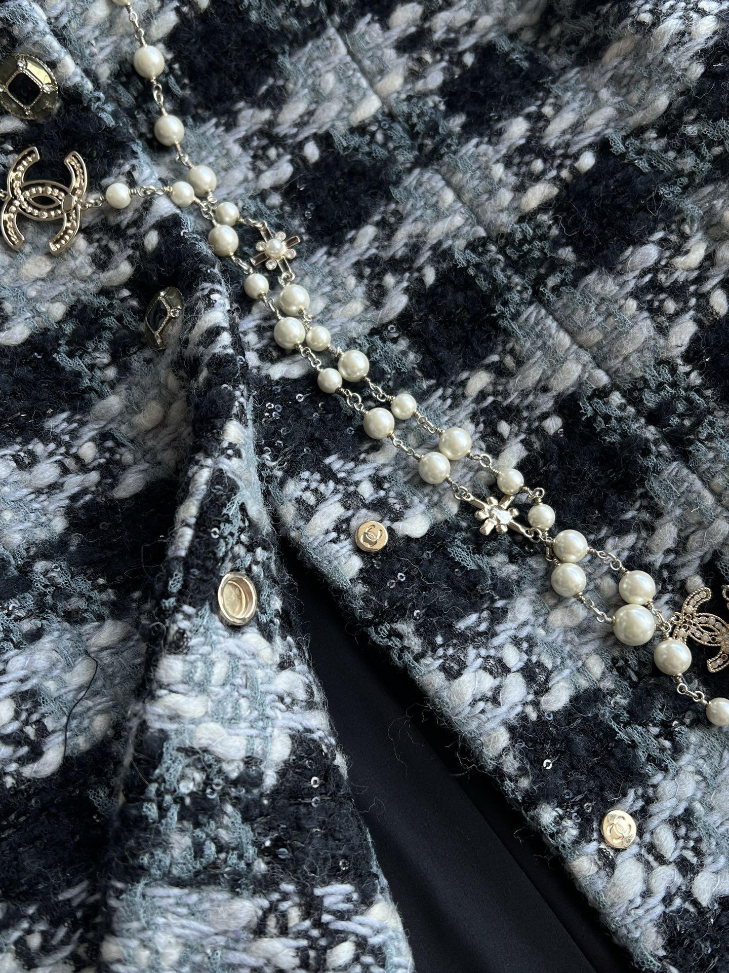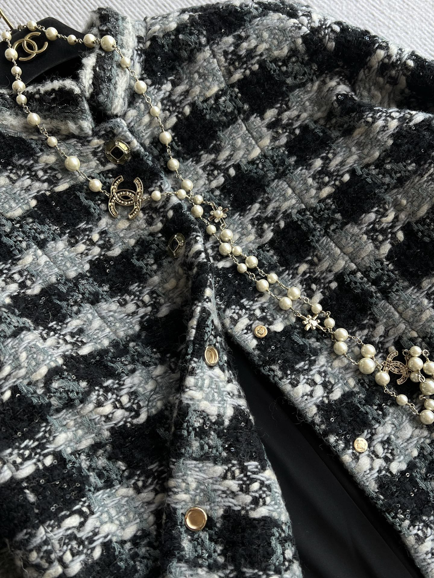 Chanel 2025 Plaid Tweed Jacket Black Wool Polyester 325363