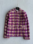 Chanel 2025 Plaid Tweed Jacket Purple Wool Polyester 325362