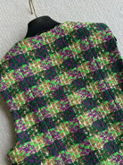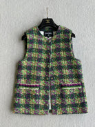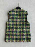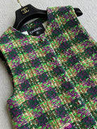 Chanel 2025 Plaid Tweed Vest Jacket Green Wool Polyester 325377
