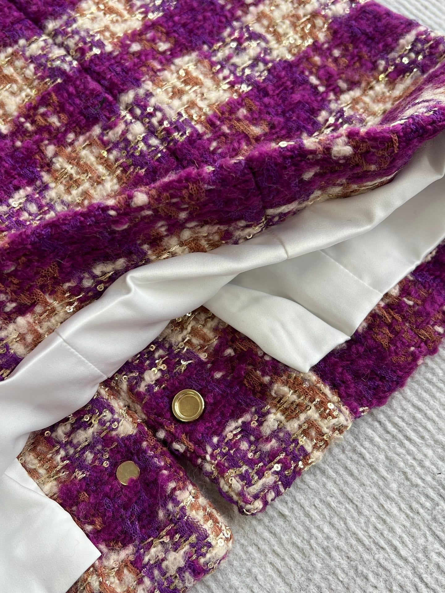 Chanel 2025 Plaid Tweed Vest Jacket Puprle Wool Polyester 325378