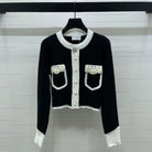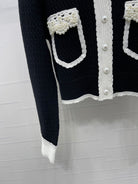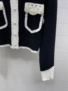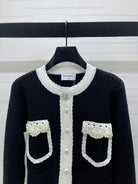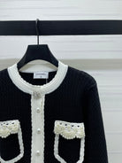Chanel 25 Cardigan Black mix White Wool 321300