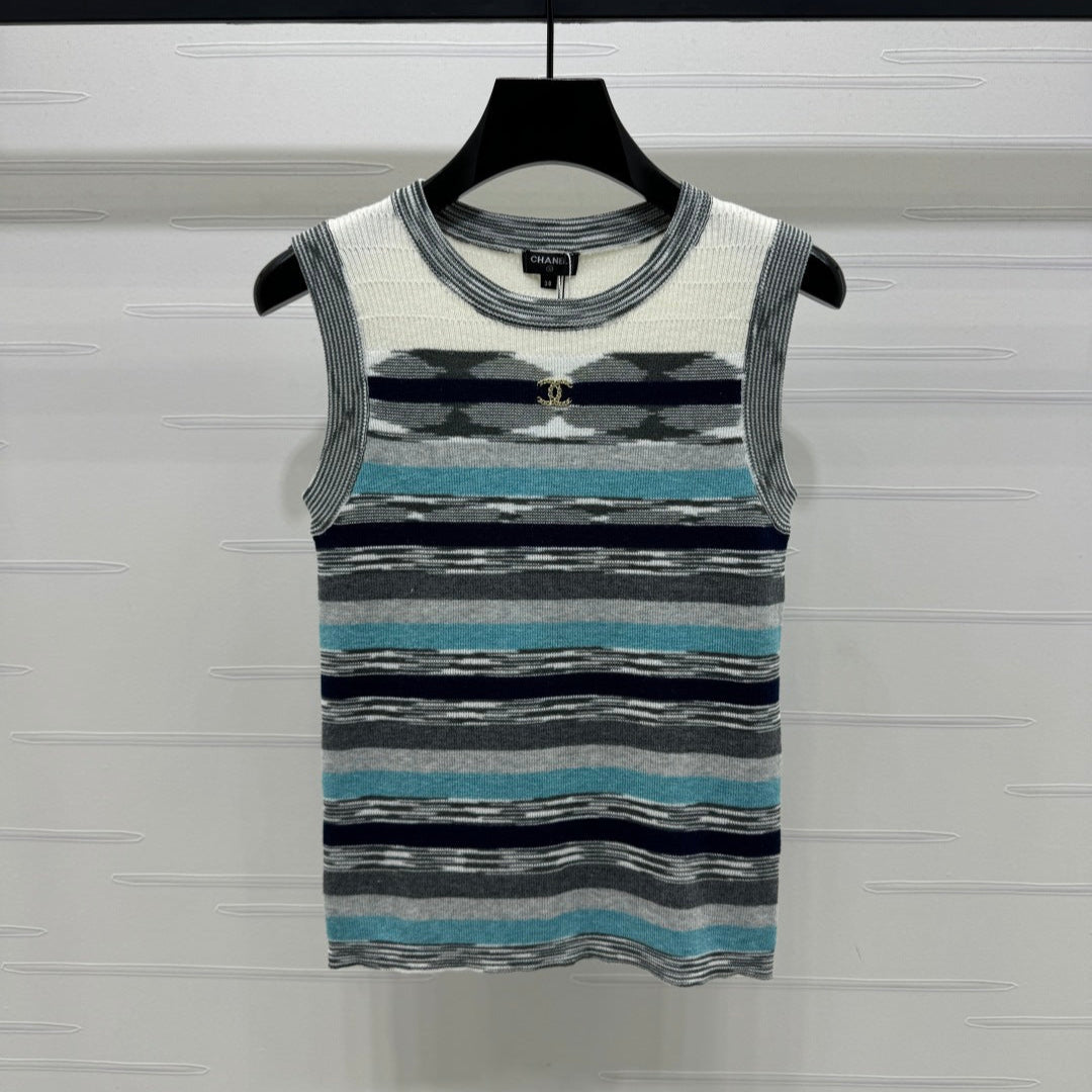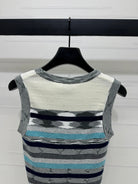 Chanel 25 Sleeveless Striped Top In Blue And Gray