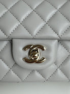 24c mini flap bag 20cm with top handle grey calfskin