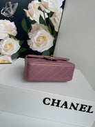 24c mini flap bag 20cm with top handle pink violet calfskin