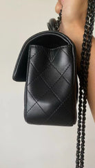 25C Mini Flap Bag Top Handle 20cm Black Lambskin Black Hardware Premium Version