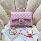 CC 25P Medium Flap Bag 25cm Top Handle Pink Calfskin Gold Hardware