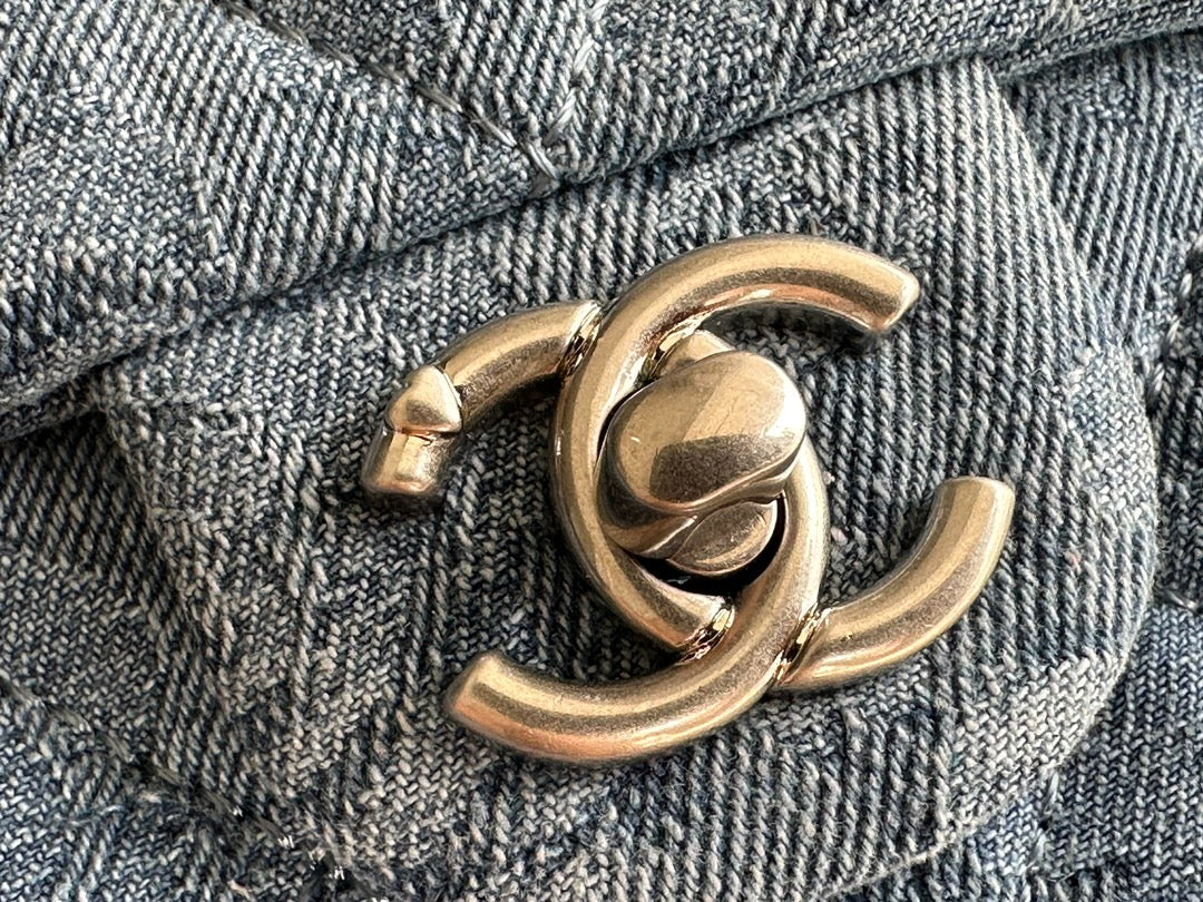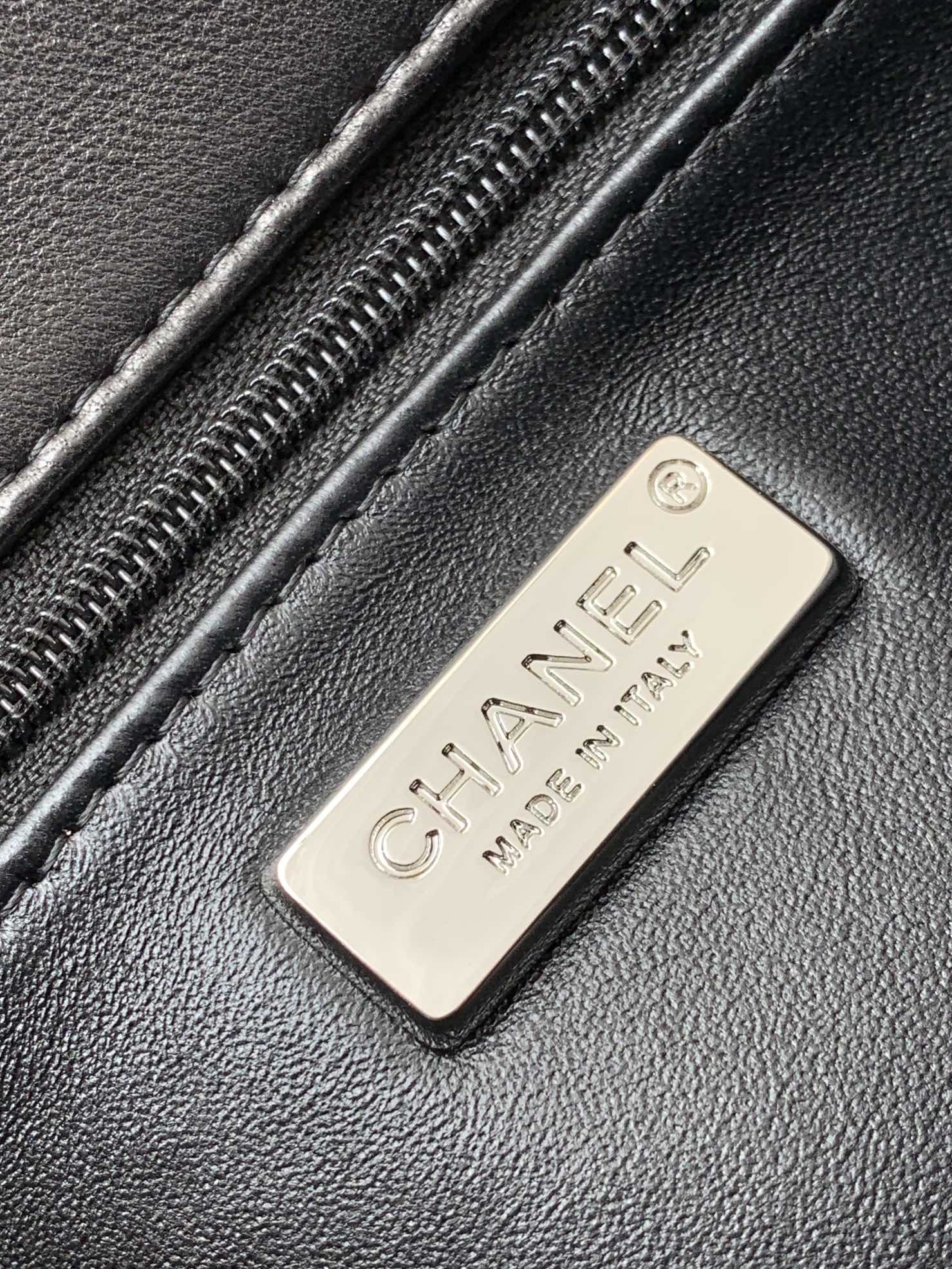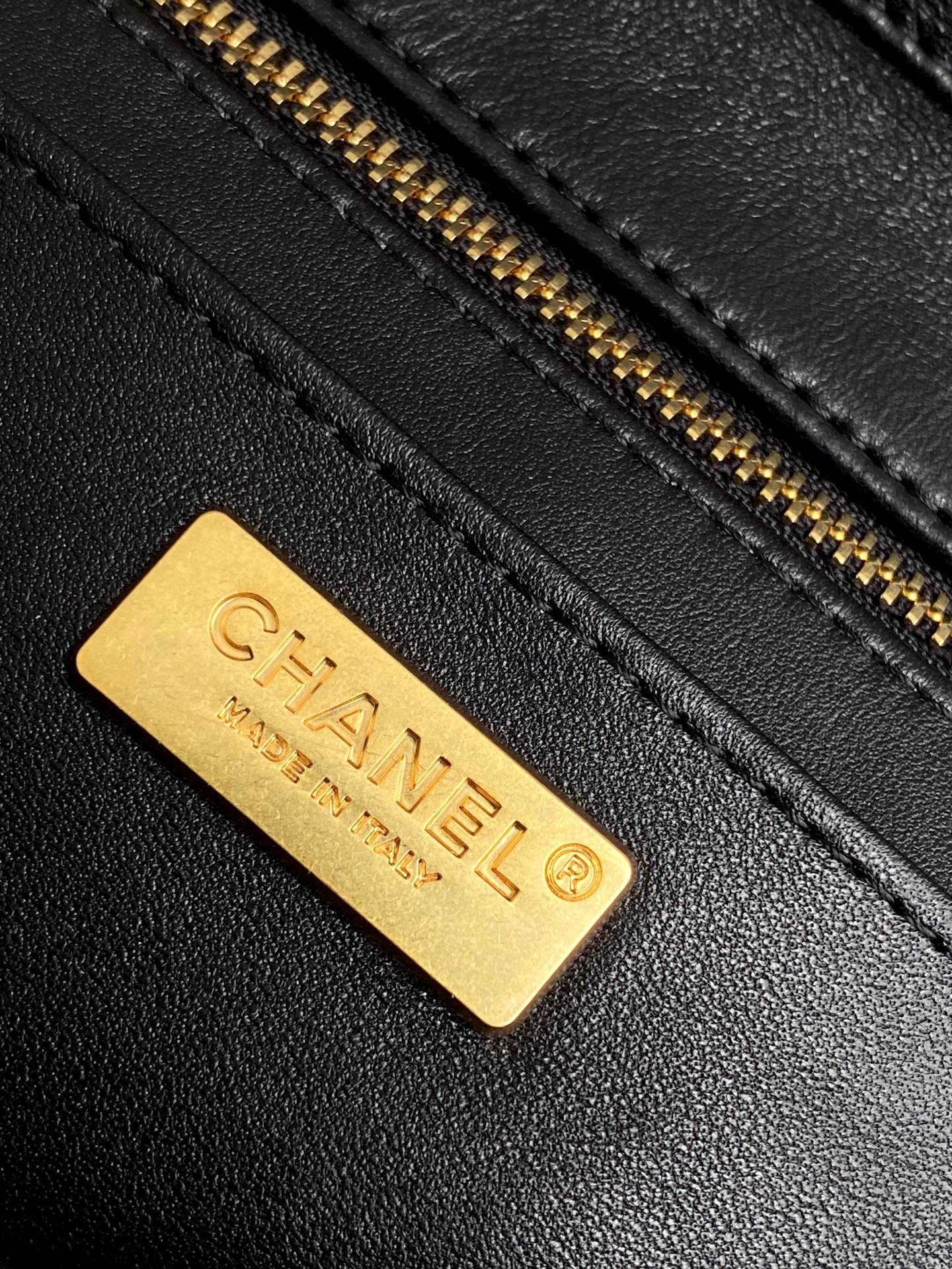 cc 25S Vintage Flap Bag 28cm Top Handle Black Calfskin