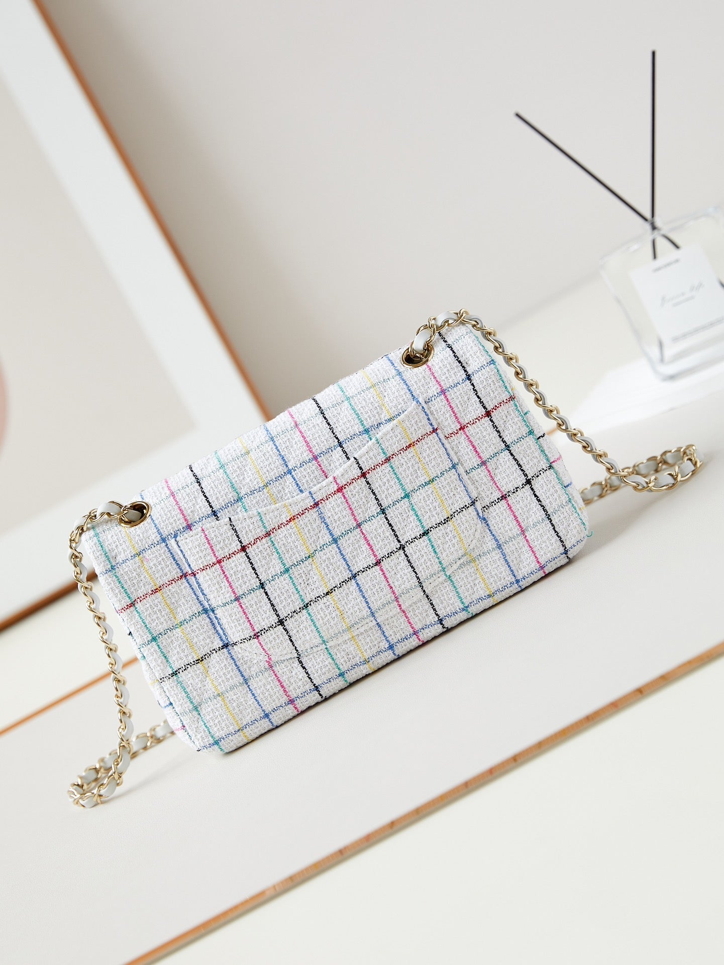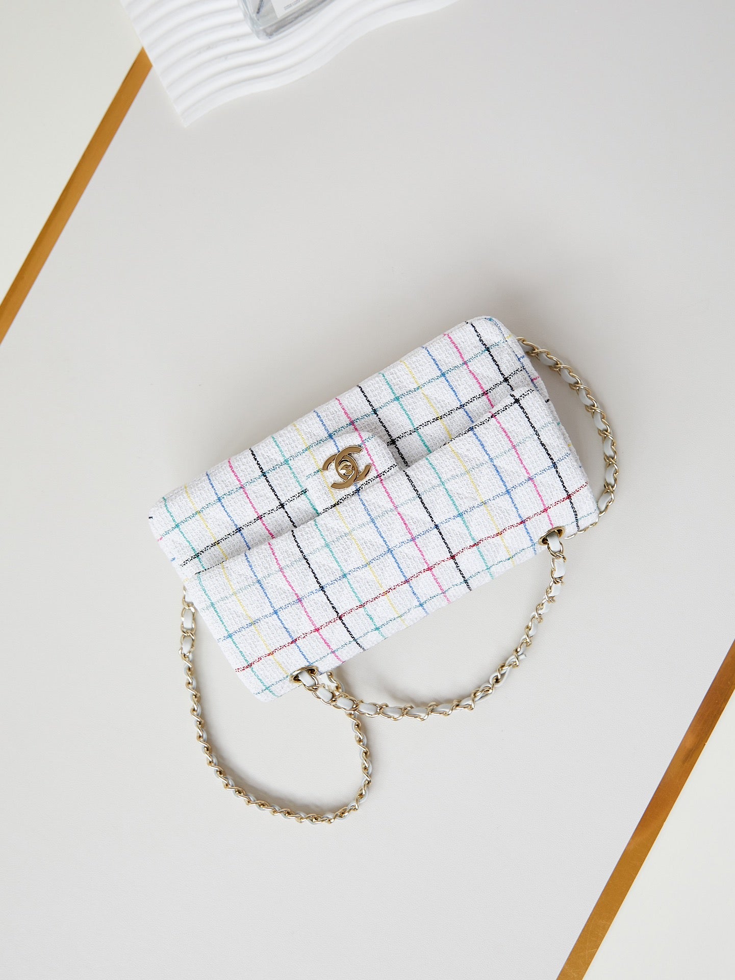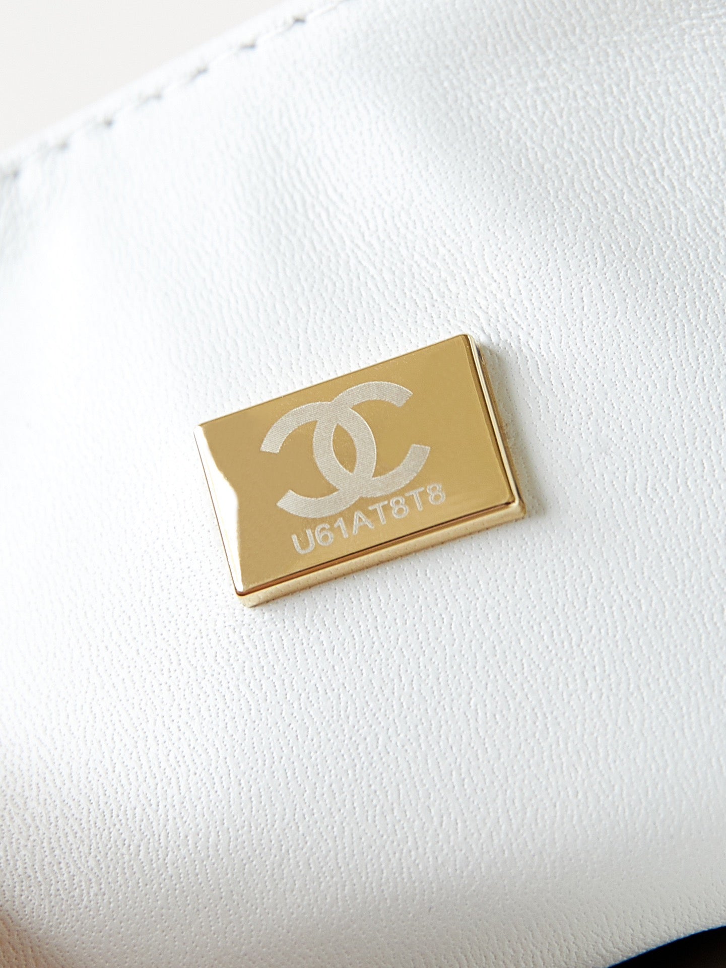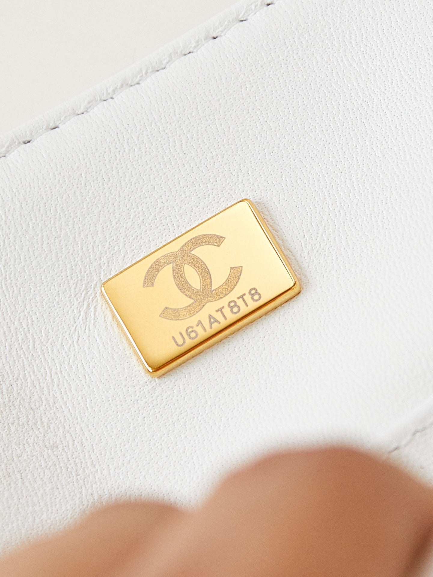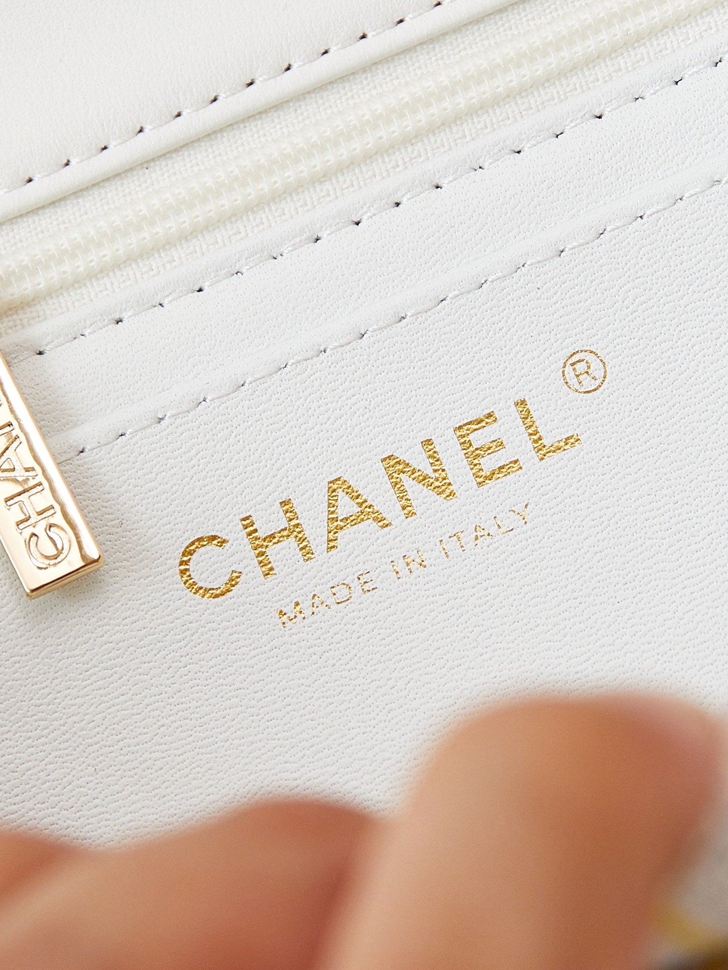 23P Flap Bag 19cm White Caviar Gold Hardware